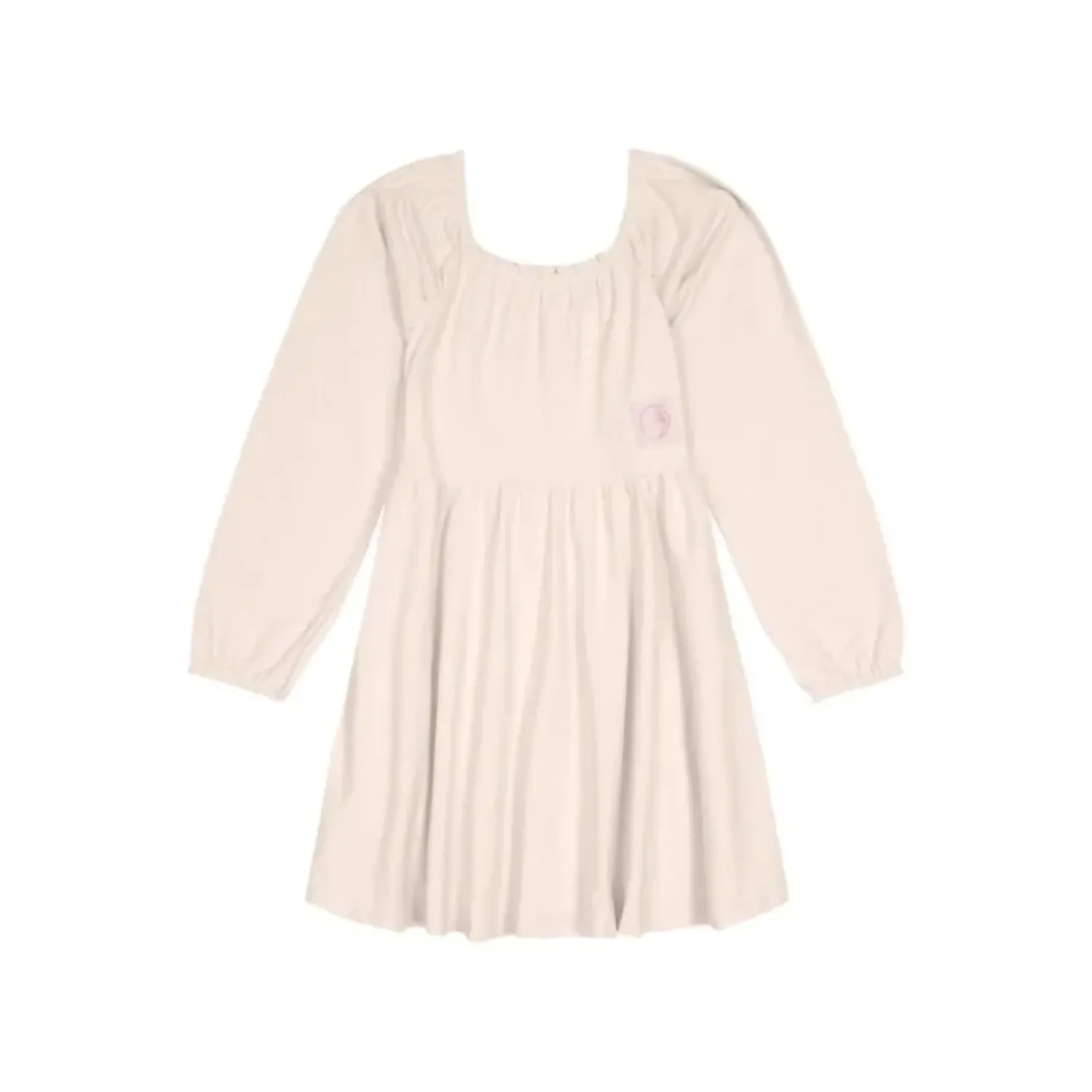 This adorable long sleeve dress for girls is made from soft stretch knit with a linen touch, featuring a round neckline, loose fit for all-day comfort, and a stylish twill decorative label detail. Perfect for cozy days with a touch of charm.