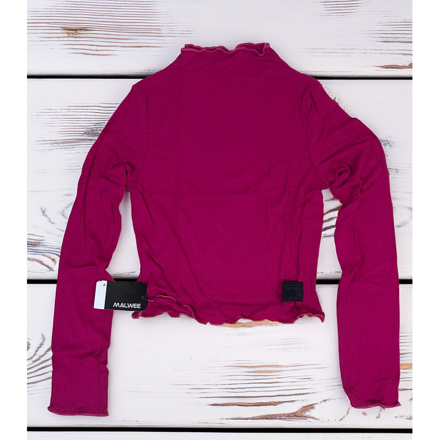 Girls' Ribbed Knit Cropped Top – Long Sleeve - Dark Pink
