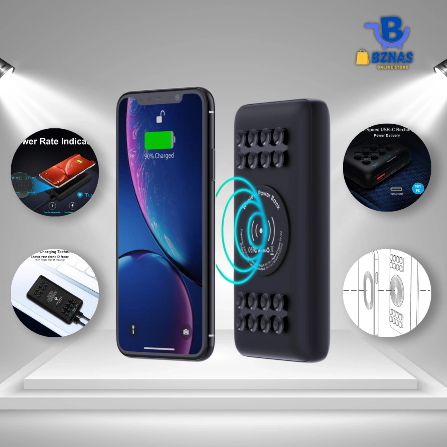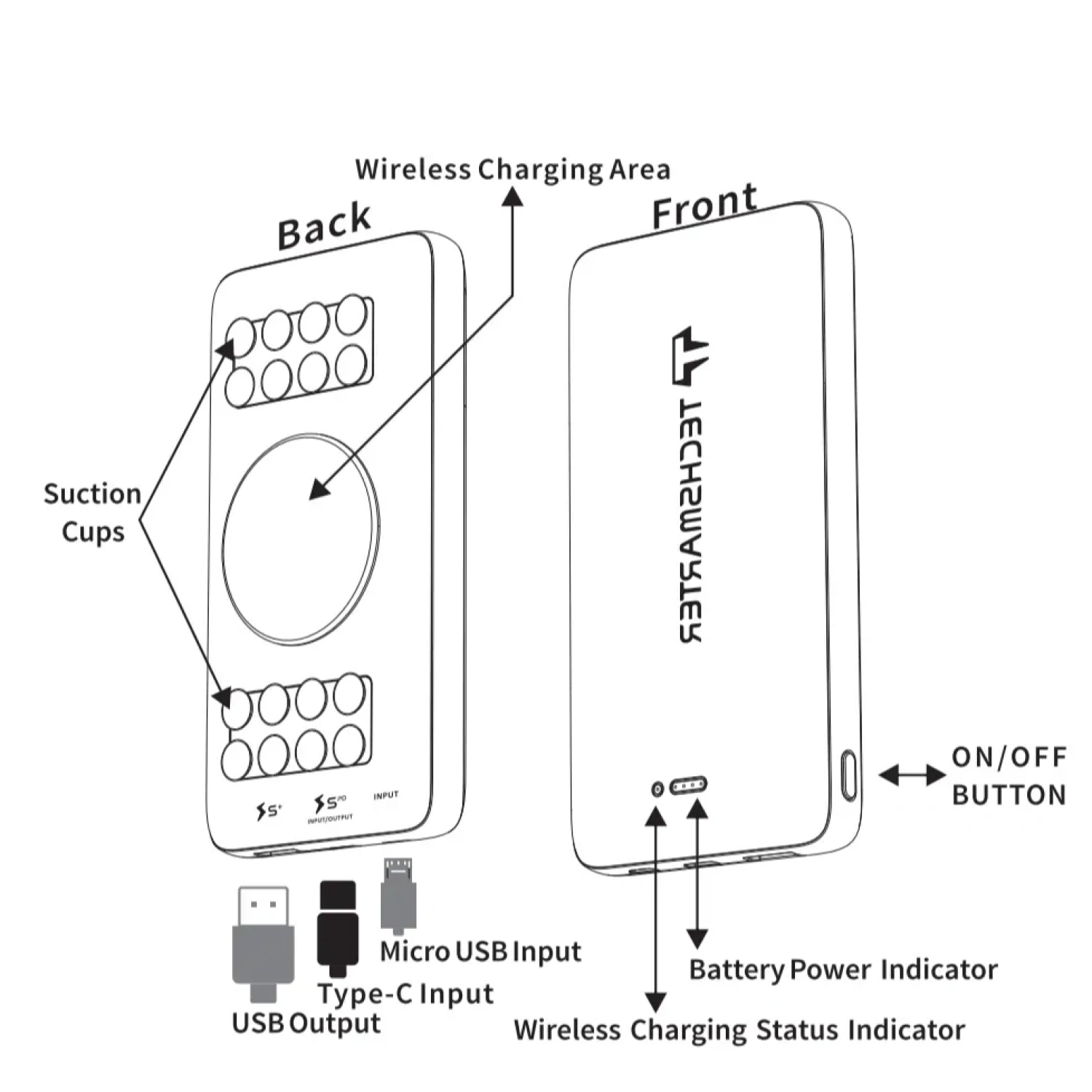 TSBar Powerbank 20000mAh Wireless with Suction Black