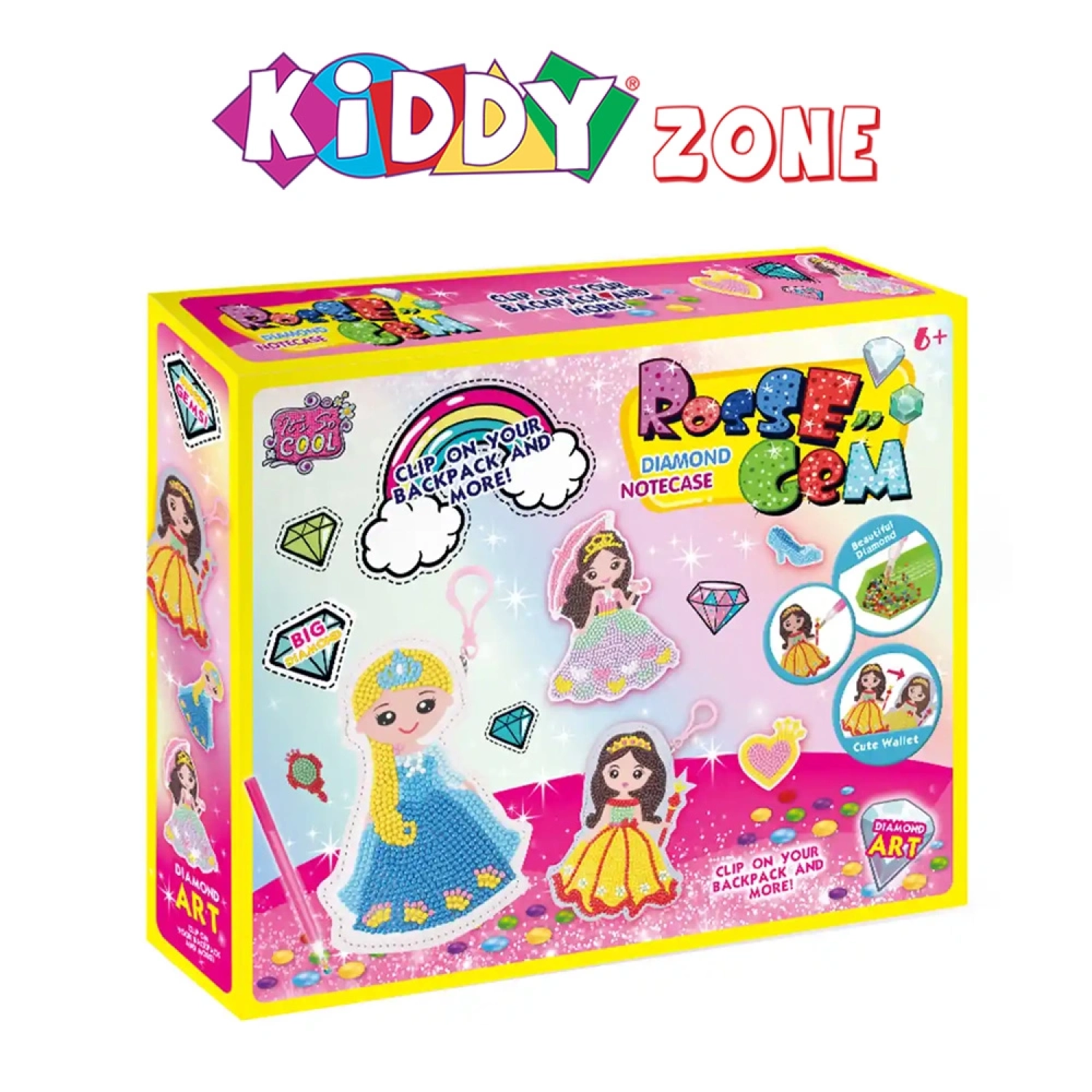 A fun DIY sticker craft set featuring a princess-themed wallet in yellow. Children can decorate the wallet with diamond or diamond-free stickers, encouraging creativity and fine motor skills. Suitable for children aged 6 years and above.