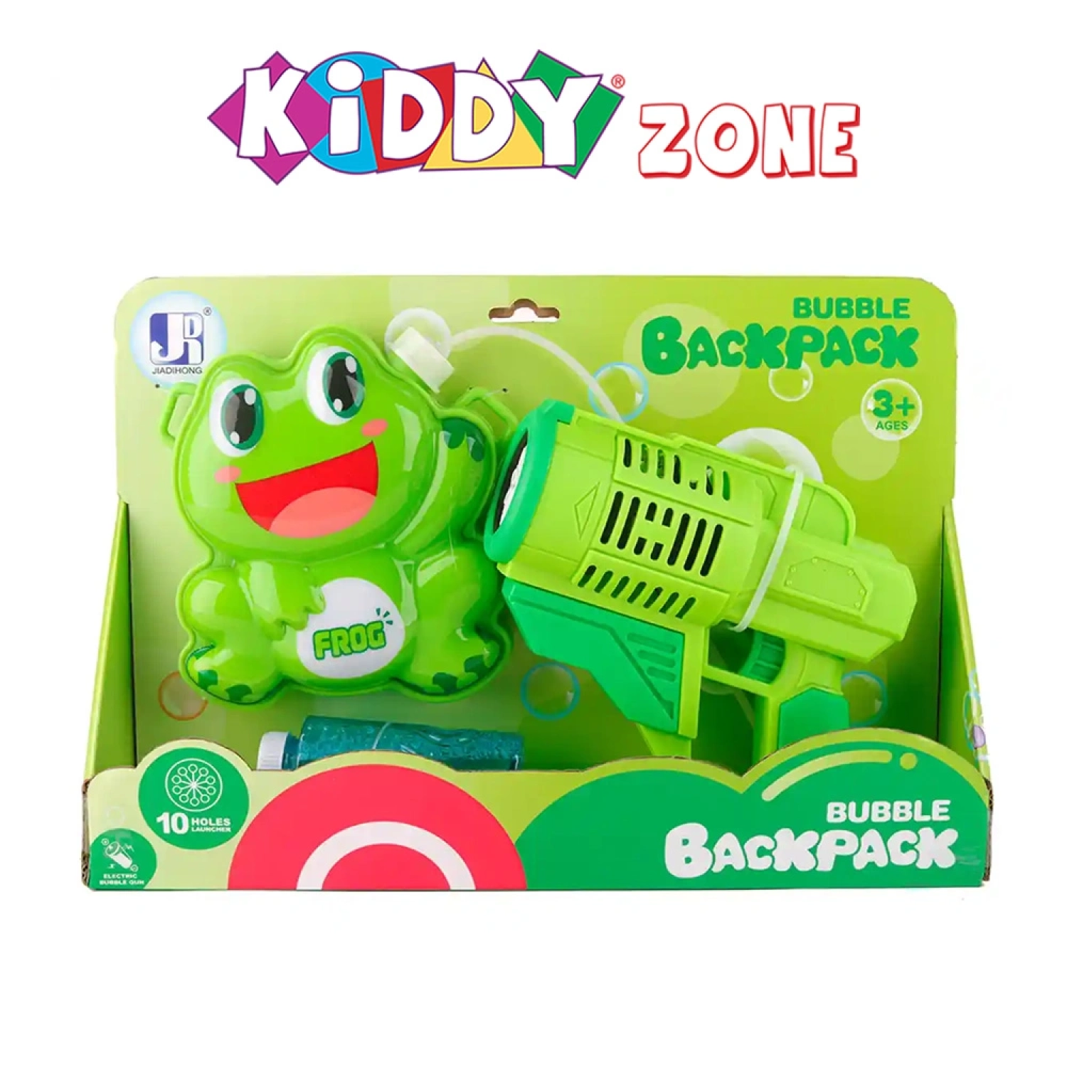 A fun bubble-blowing toy shaped like a frog and worn as a backpack. Encourages active outdoor play and helps develop coordination and motor skills. Suitable for children aged 3 years and above.