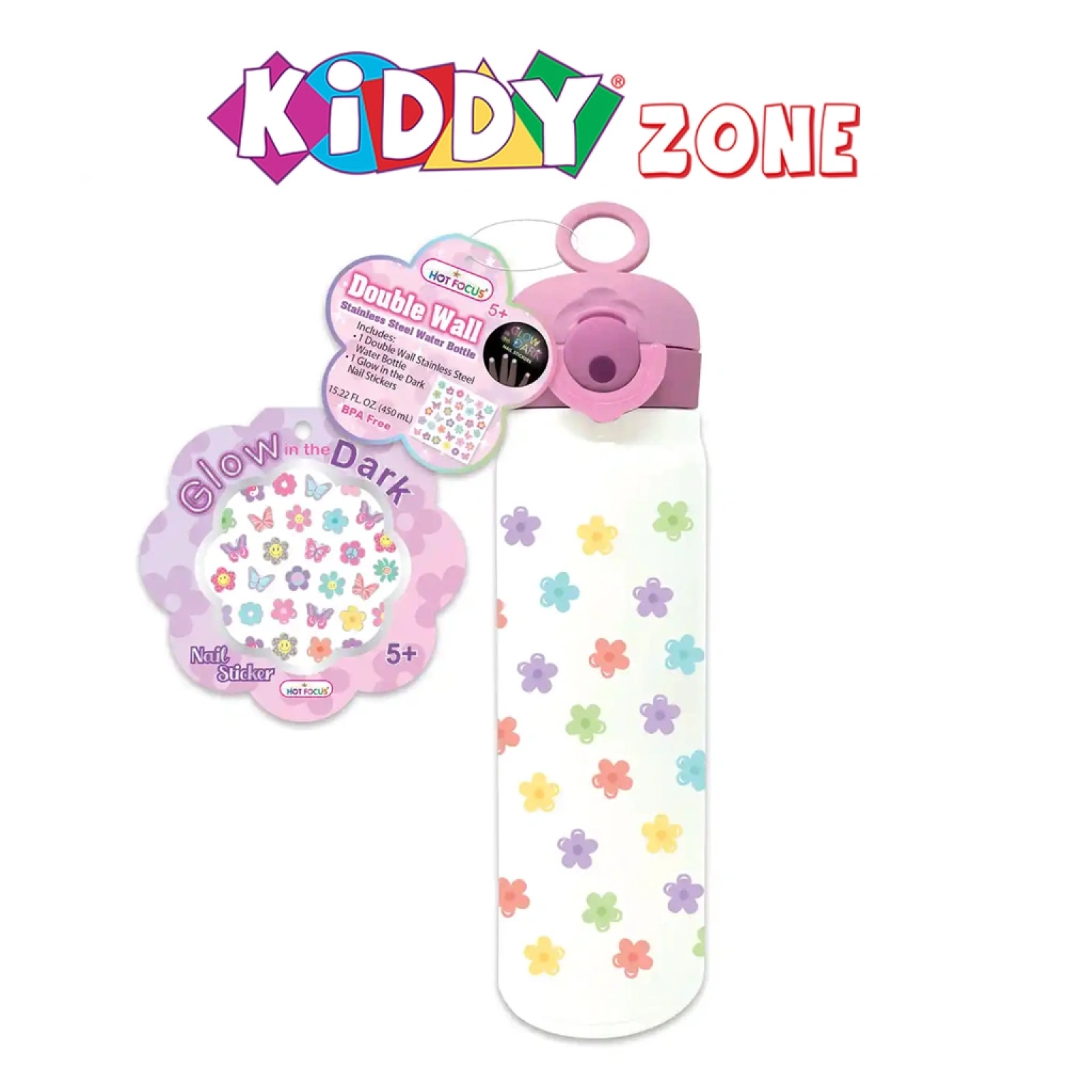 A stylish and durable double-wall stainless steel water bottle with a groovy flower design, keeping drinks insulated. Holds 470ml (15.5 Fl Oz) of liquid, suitable for children aged 8 years and above.
