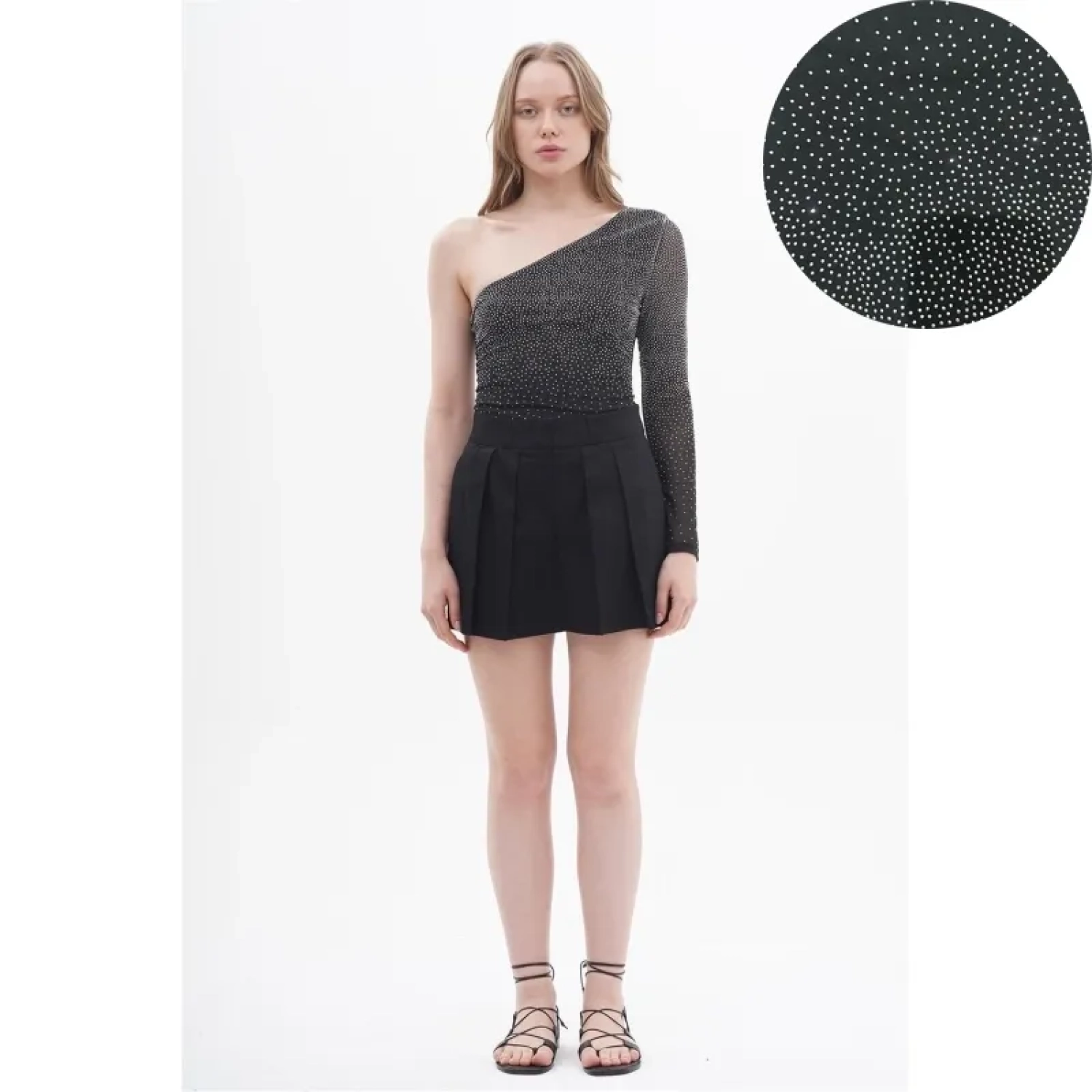 ONE SLEEVE BODY WITH RHINESTONES, Polyester - 90%