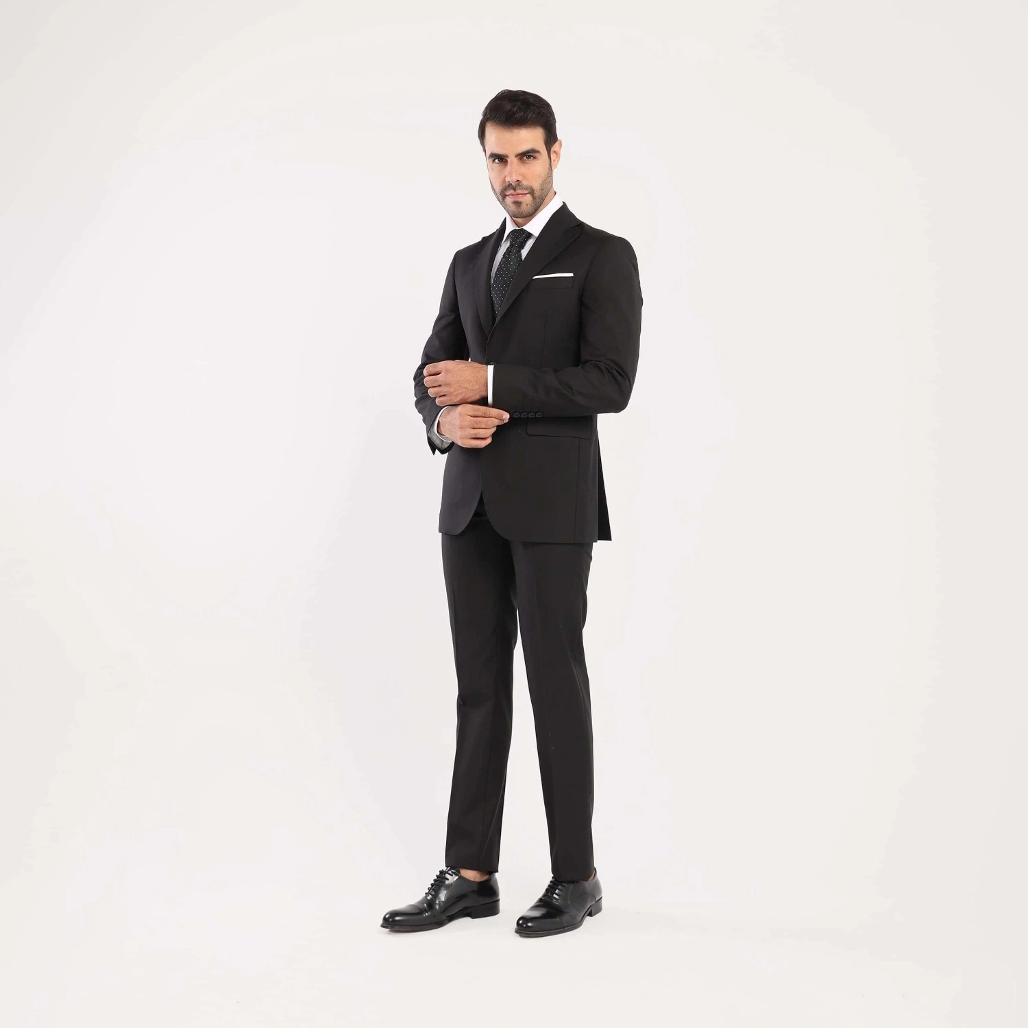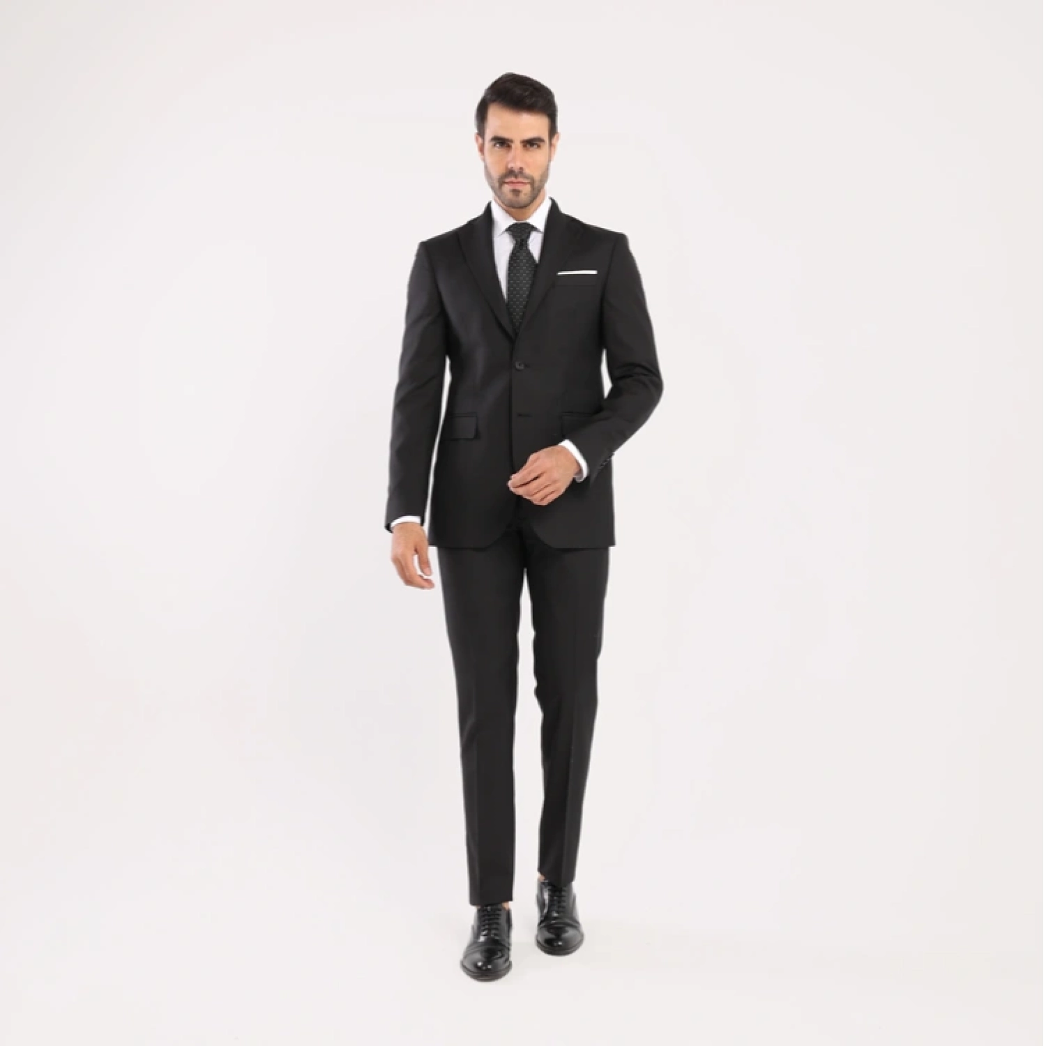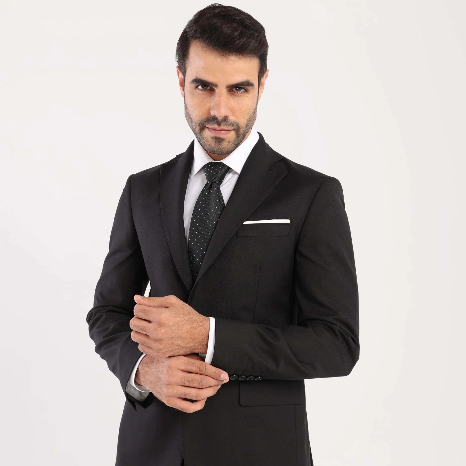 perfect for business or formal occasions. Made from 44% wool, 54% Polyester, 2% lycra which the construction ensures a refined and polished look, while the black color offers a touch of sophistication. Add this suit to your wardrobe and you'll be ready for anything.