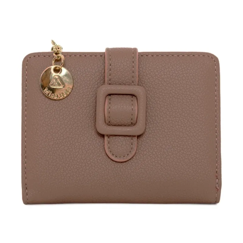 The Nina Wallet offers timeless charm with a modern twist, crafted from pebbled eco leather and finished with a signature buckle strap detail. Accented by a polished gold-tone charm, it features a zippered compartment and organized slots to keep essentials secure and stylish. Measuring 12x9.5 cm, it is available in Ivory White, Dusty Rose, Toffee Brown, and Ink Black.