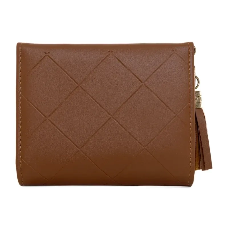 Crafted from high-quality eco leather, the Polly Women Wallet features a charming envelope flap enhanced by delicate quilted stitching, a top zipper closure, and a playful tassel detail. Available in Cinnamon Brown, Taupe Beige, Mocha Brown, Classic Black, Blush Rose, and Pearl White, this compact and elegant piece measures 11.5x9 cm.