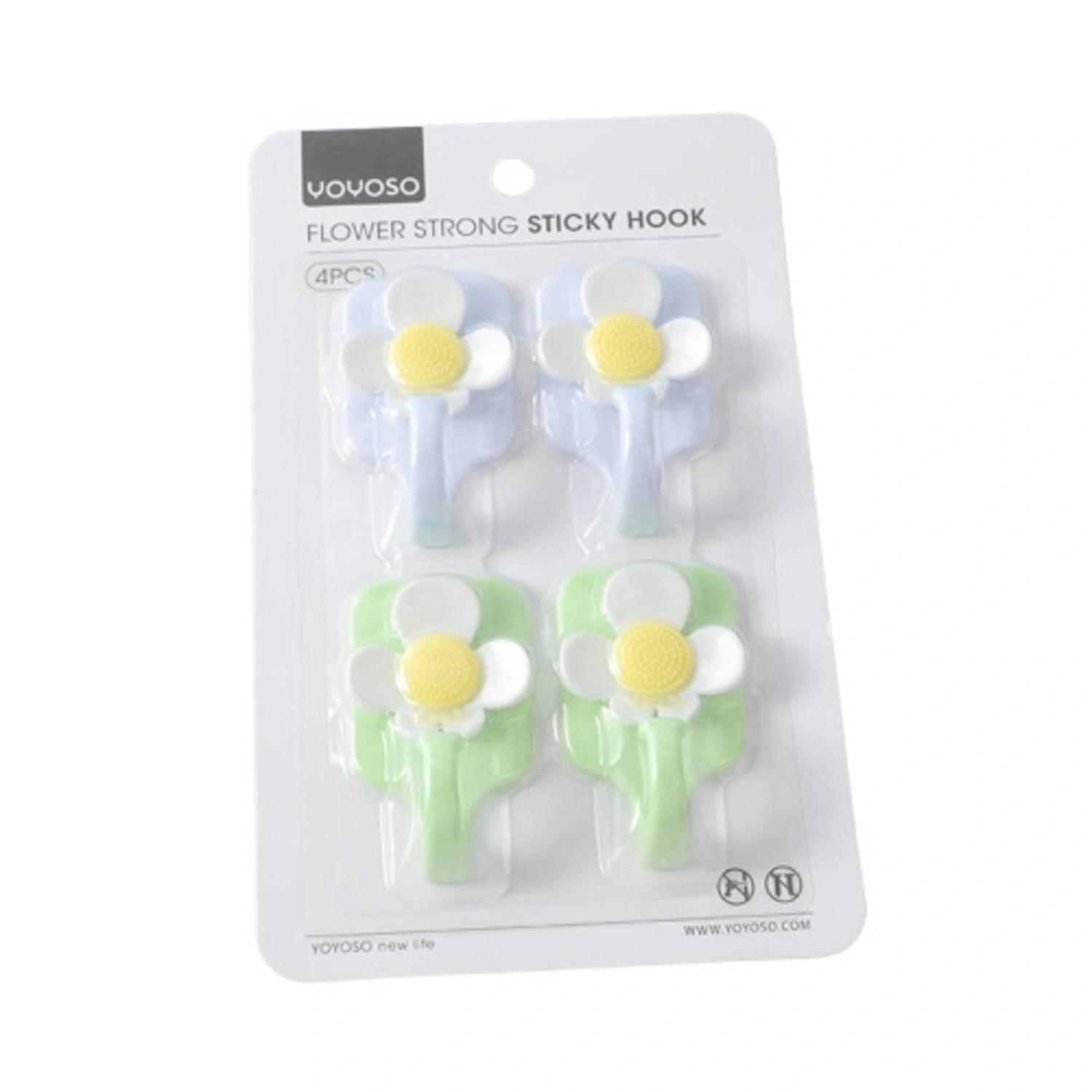 Set of 4 decorative flower-shaped sticky hooks with strong adhesion. Ideal for hanging lightweight items such as keys, towels, or kitchen utensils on smooth surfaces. Easy to install and remove without leaving residue.