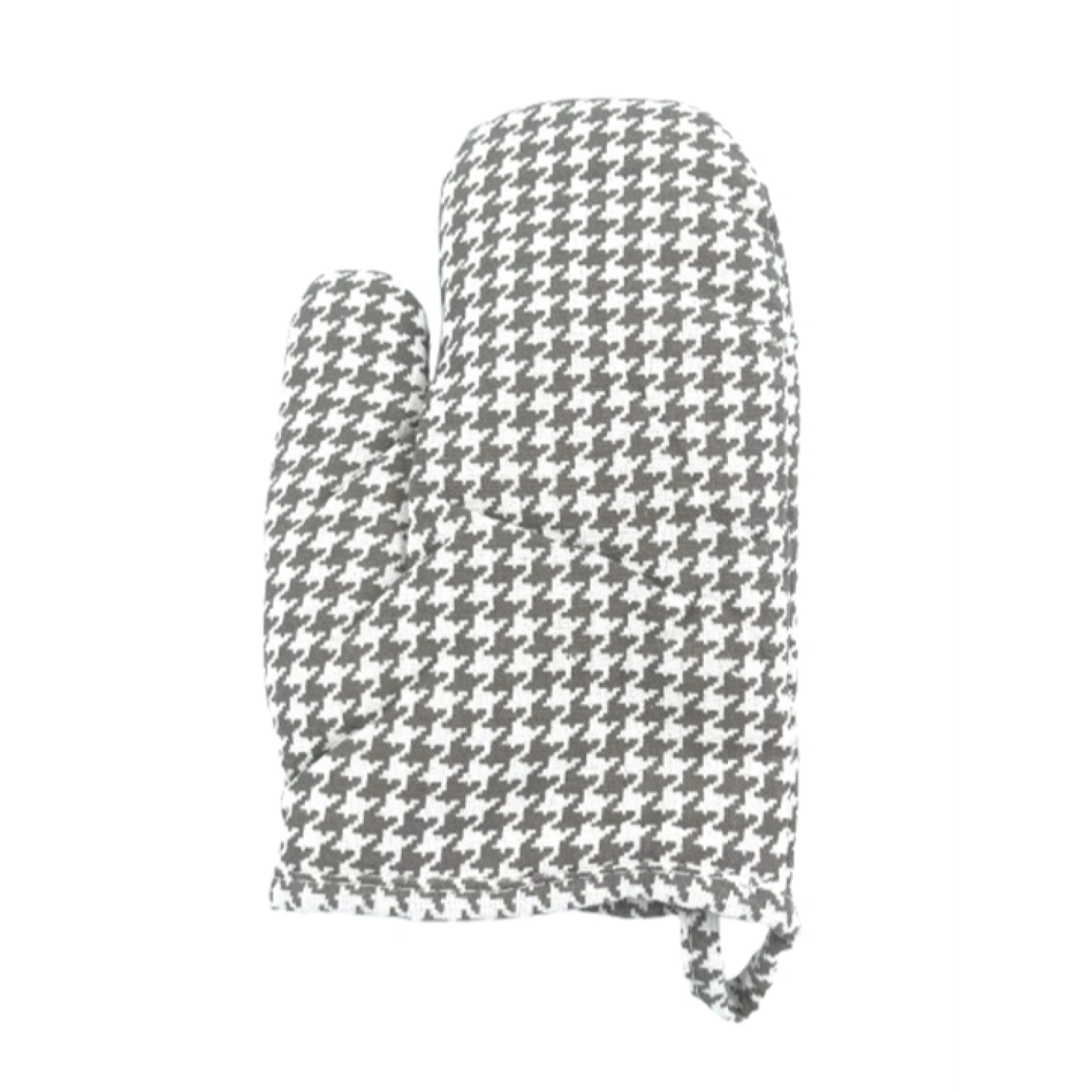 Durable and stylish insulation gloves with a houndstooth pattern in dark grey. Designed to protect your hands from heat while cooking, baking, or grilling, combining safety with elegance.