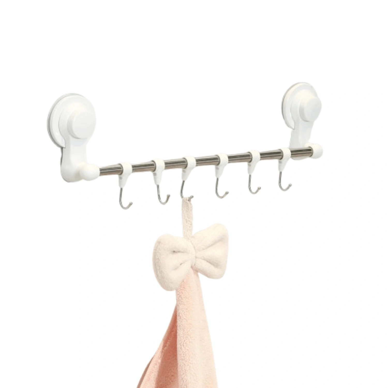 A versatile 6-in-1 wall hook with strong suction, designed to hold various household items securely. Easy to install without drilling, perfect for bathrooms, kitchens, or any smooth surface. Durable and reusable.