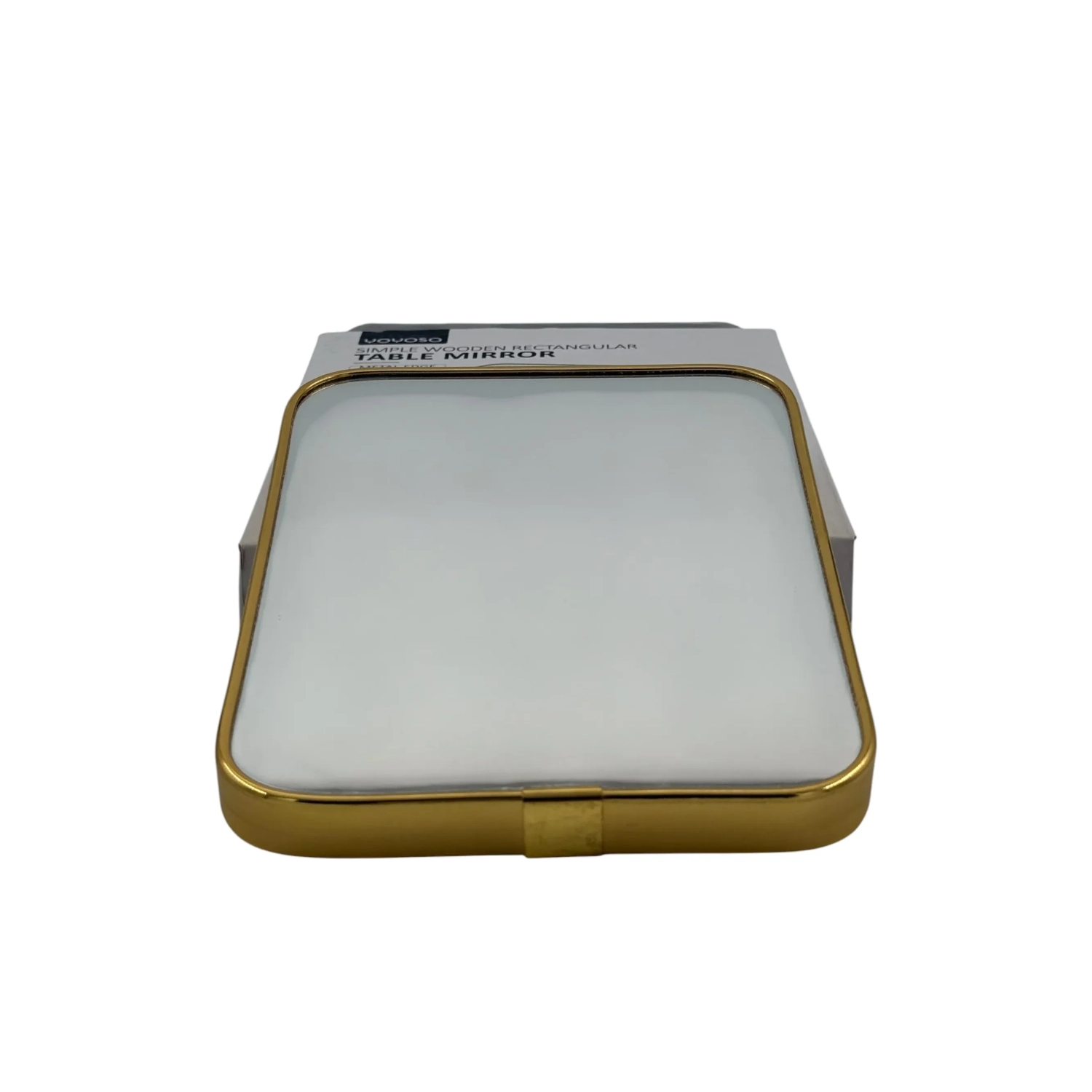 'A minimalist rectangular table mirror crafted from durable wood with a sleek metal edge. Perfect for daily grooming, makeup application, or decorative use on desks and vanities.