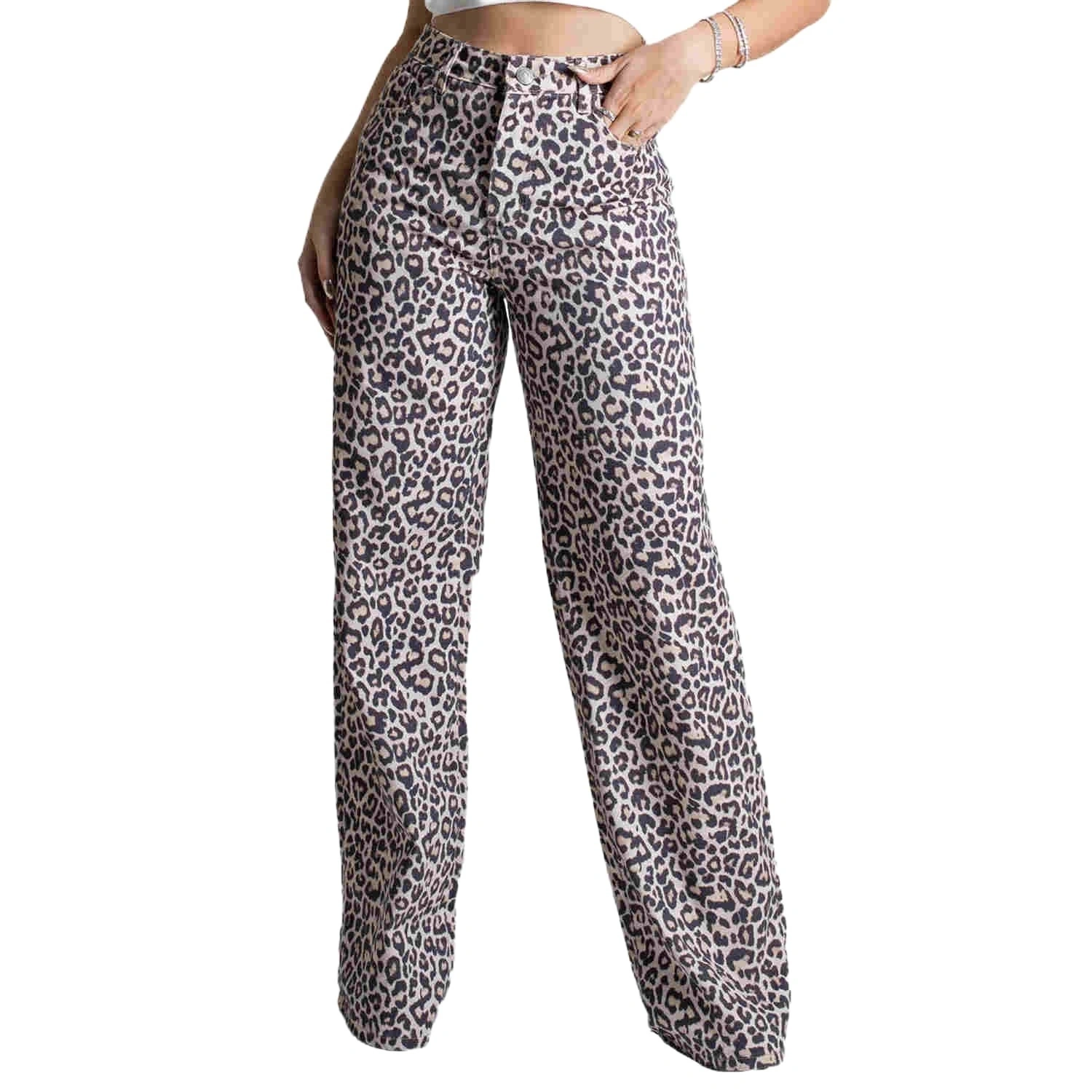 The Sawary Jeans Women’s Wide Leg Jeans - Cheetah Print bring a fashion-forward twist to a classic silhouette, combining bold animal print with all-day comfort. Designed with a high-waisted, wide-leg cut, these jeans offer a flattering and elongated look, perfect for making a statement.Crafted from 100% premium cotton, they provide breathability, durability, and a structured fit, ensuring both comfort and a sleek appearance. The cheetah print design adds an edgy and trendy aesthetic, making these jeans a standout piece in any wardrobe.Featuring a zipper and button closure with belt loops, these jeans offer a secure and adjustable fit, while the high-quality cotton construction ensures they maintain their shape wear after wear.