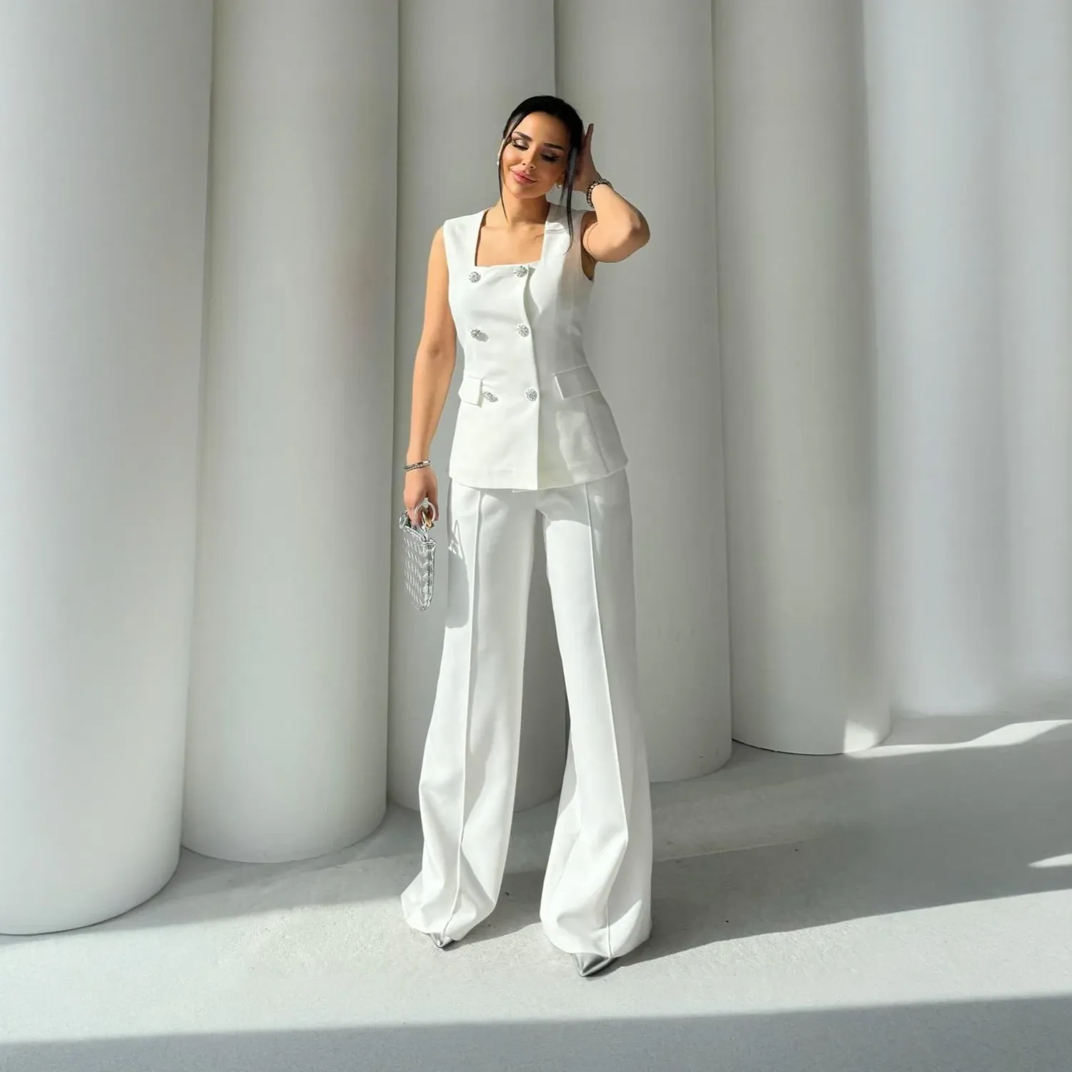 Details: Sleeveless vest, elegant buttons, tailored pants, coordinated