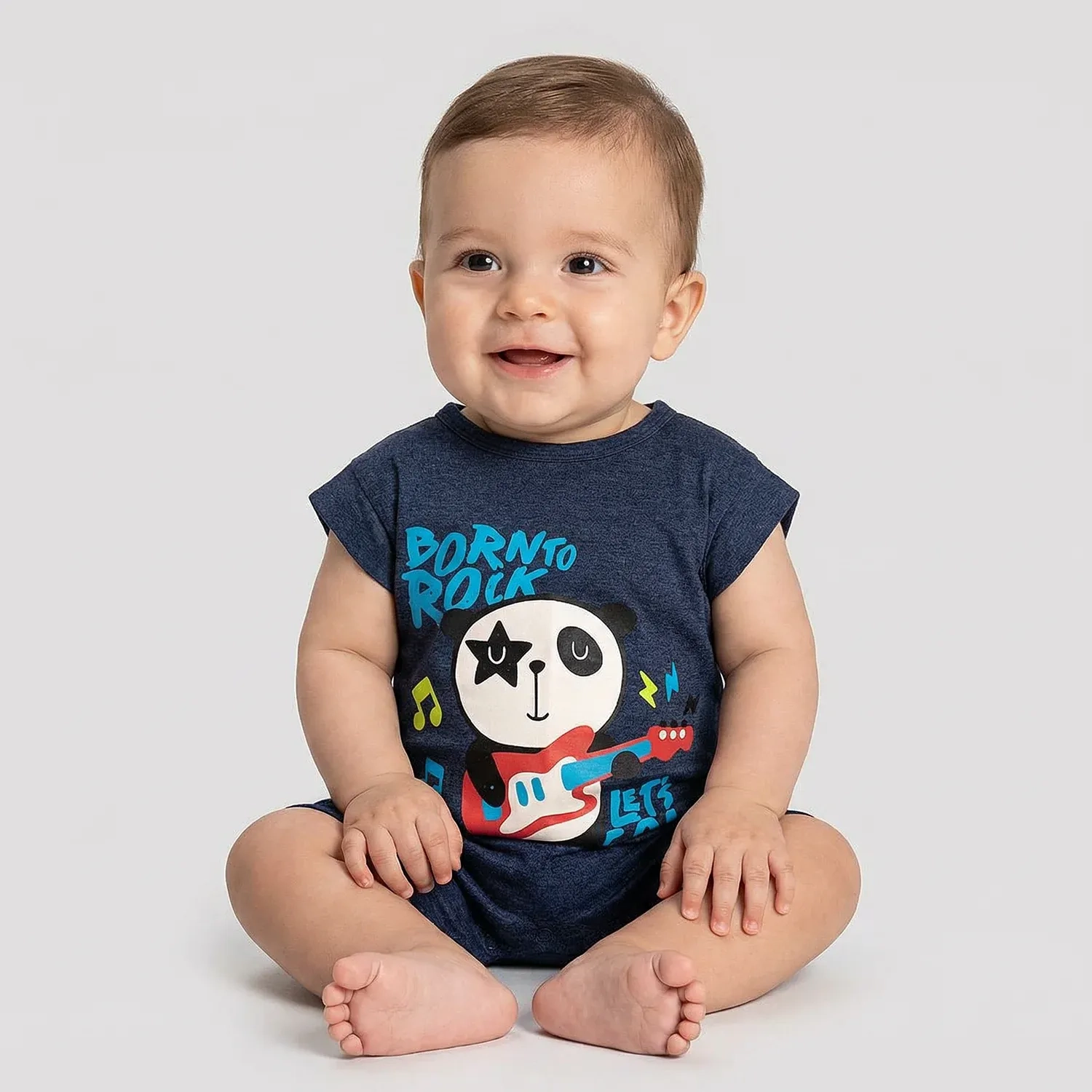 Cool Graphic Design: Features a unique "guitar-playing panda" print that adds a playful, musical vibe to your baby's wardrobe.
