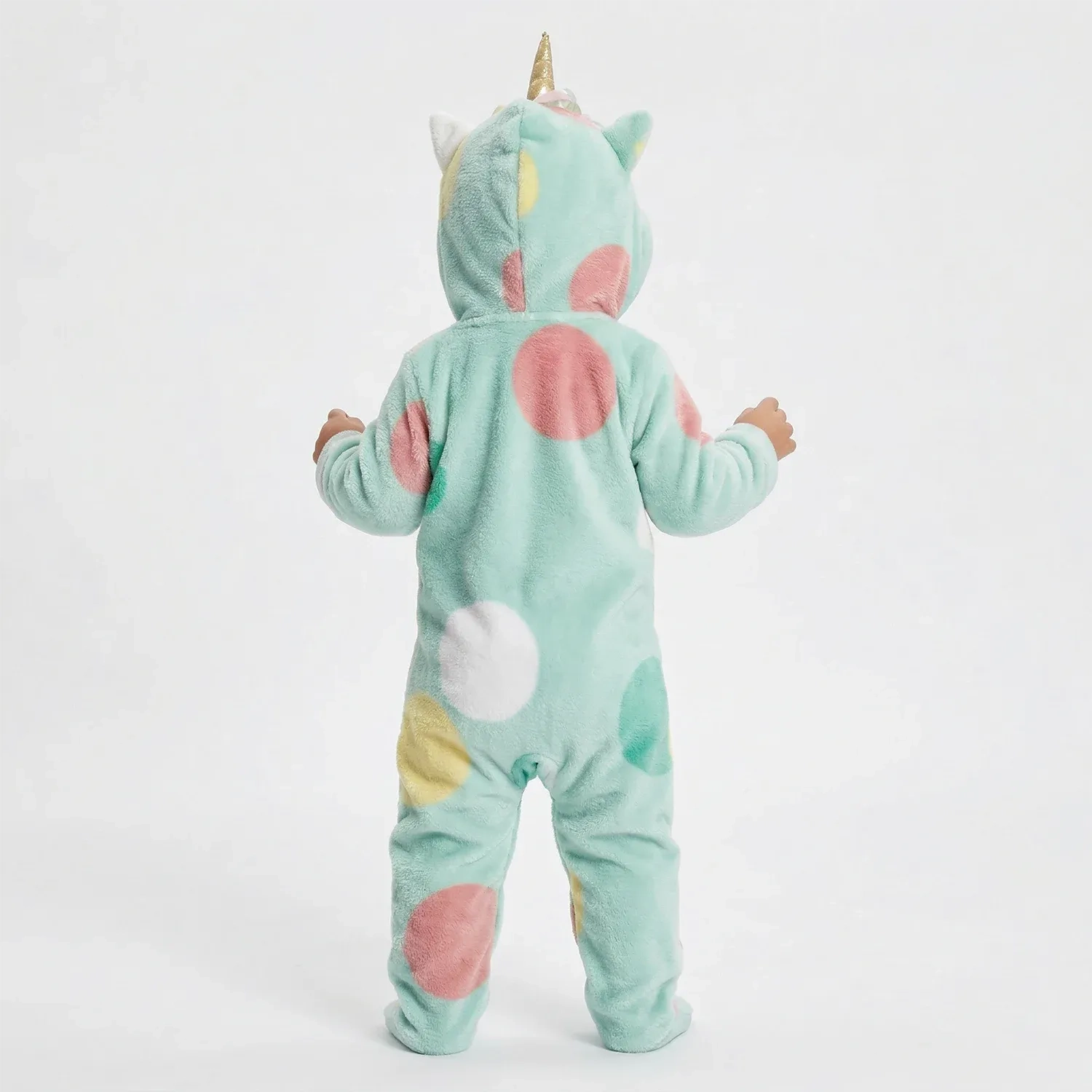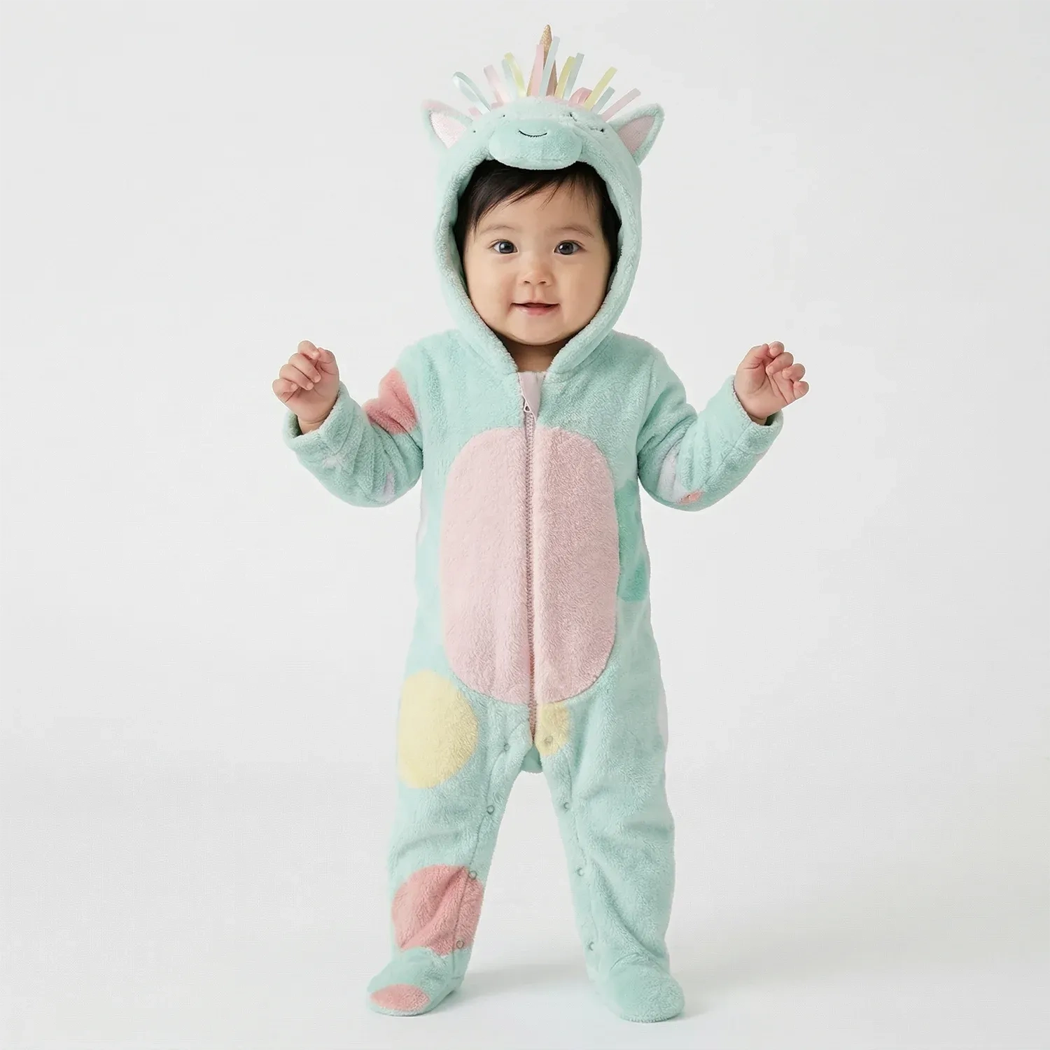 From Tip Top, the iconic Brazilian children’s brand since 1952, comes this enchanting and cozy unicorn hooded jumpsuit. Renowned for its commitment to high-quality and comfortable children's fashion, Tip Top has designed this piece to be as functional as it is magical. The soft light green fabric is paired with adorable 3D ear and horn details on the hood, turning every chilly day into a fairy tale. Featuring a premium dual-layer construction with a breathable cotton exterior and a plush polyester interior, it ensures your little one stays warm and snug during outdoor adventures or cozy indoor play.