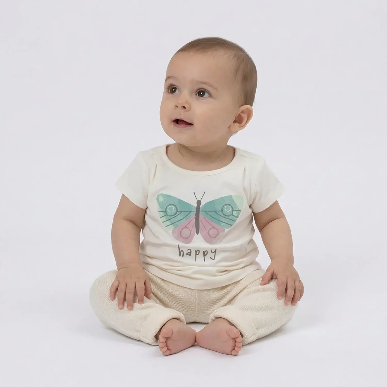 From Tip Top, the premier Brazilian children’s brand since 1952, comes the "Happy Butterfly" T-shirt—a soft, cheerful staple designed for everyday joy. Known for a legacy of quality and comfort, Tip Top has crafted this light beige tee with a delicate butterfly motif and an inspiring "Happy" slogan. The specialized blend of cotton and viscose provides a silky-soft texture and a graceful drape, while the touch of elastane ensures the shirt moves with your child. Whether it's for a school day, a playdate, or a weekend outing, this shirt brings a gentle, positive touch to any young girl's wardrobe.