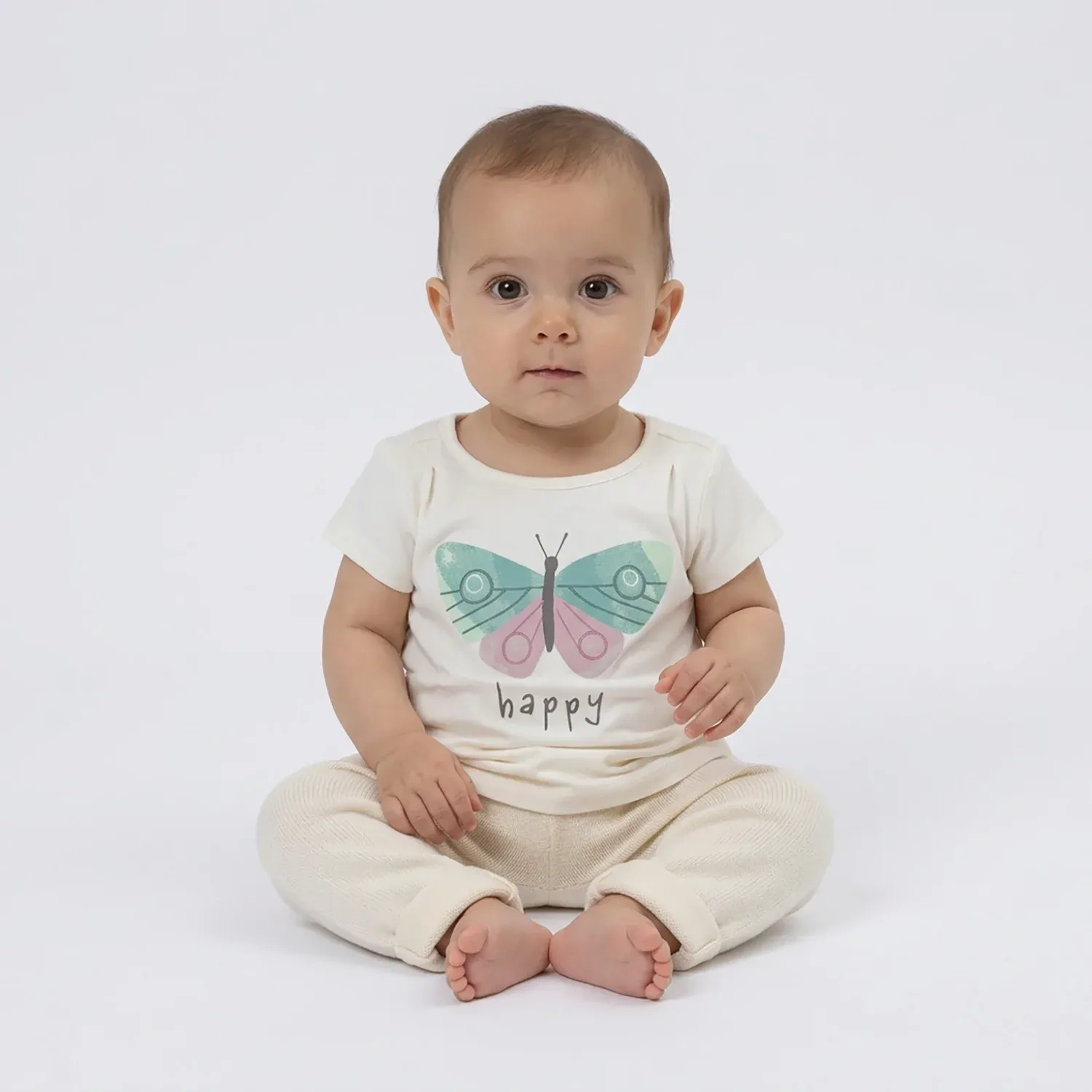 Inspiring Design: Features a charming butterfly print and a "Happy" message to bring a boost of positivity to every outfit.