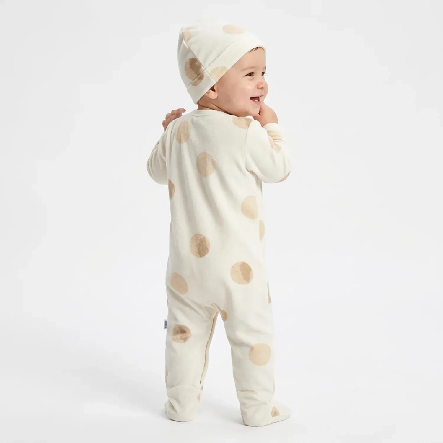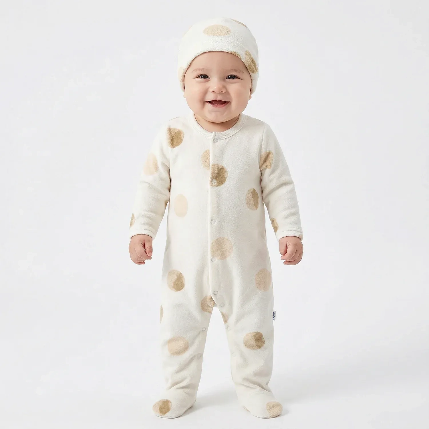From Tip Top, the premier Brazilian children’s brand since 1952, comes this classic and charming polka dot jumpsuit. Known for a legacy of comfort and quality, Tip Top has designed this off-white and beige piece to be a timeless addition to your newborn's collection. Made from a premium cotton-rich blend, it provides a soft, breathable touch that is ideal for delicate skin. The matching hood offers extra warmth, while the flexible fabric ensures your little one can move freely during play or rest comfortably during naps. With its elegant yet playful pattern, this jumpsuit perfectly balances style and coziness.