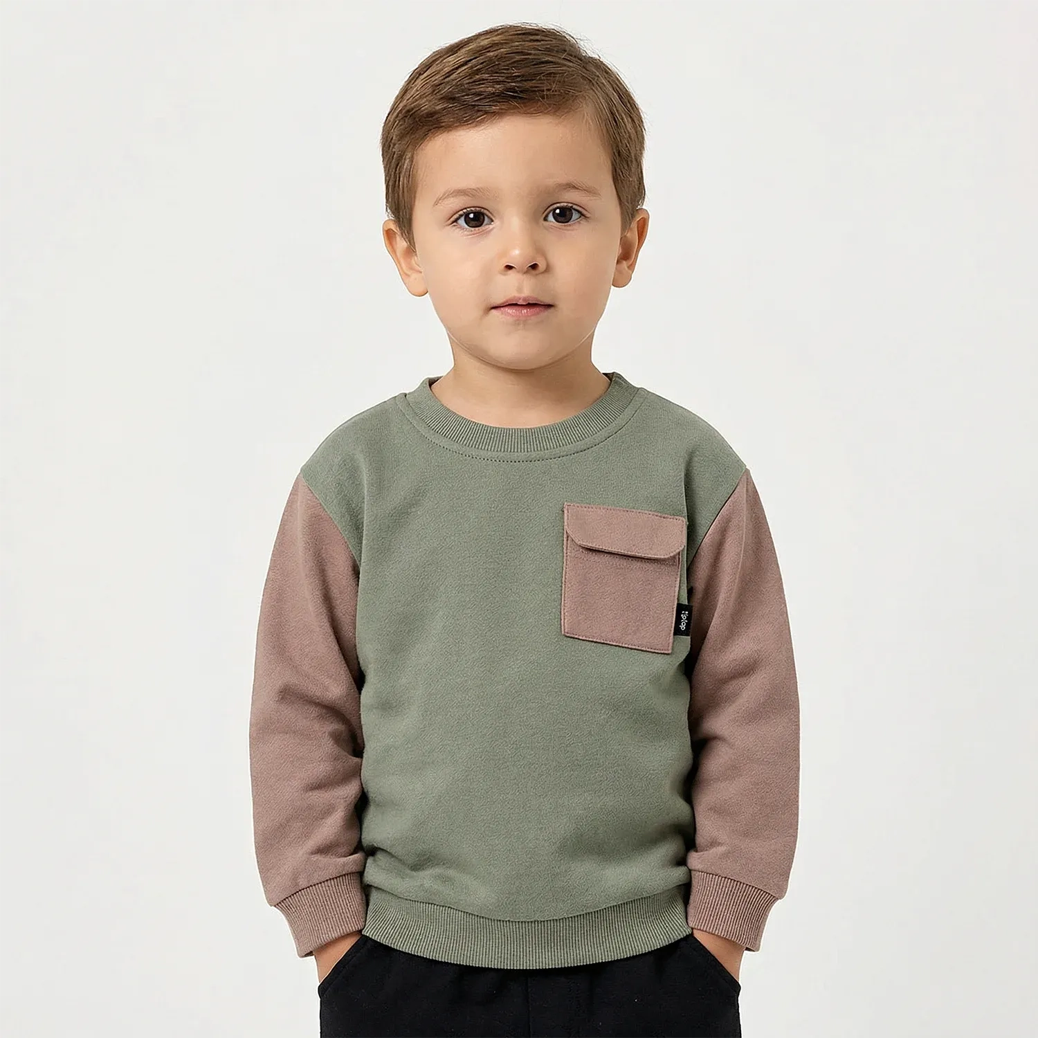 From Tip Top, the iconic Brazilian children’s brand since 1952, comes the "Little Buddy" sweatshirt—a modern take on a classic seasonal essential. Known for high-quality craftsmanship and a legacy of comfort, Tip Top has designed this piece with a trendy color-block aesthetic. The vibrant green body is perfectly balanced by earthy-toned sleeves, creating a rugged yet stylish look for your little explorer. Featuring a decorative chest pocket for added flair, this sweatshirt is crafted to provide cozy warmth for cooler days while remaining lightweight enough for active play and daily adventures.