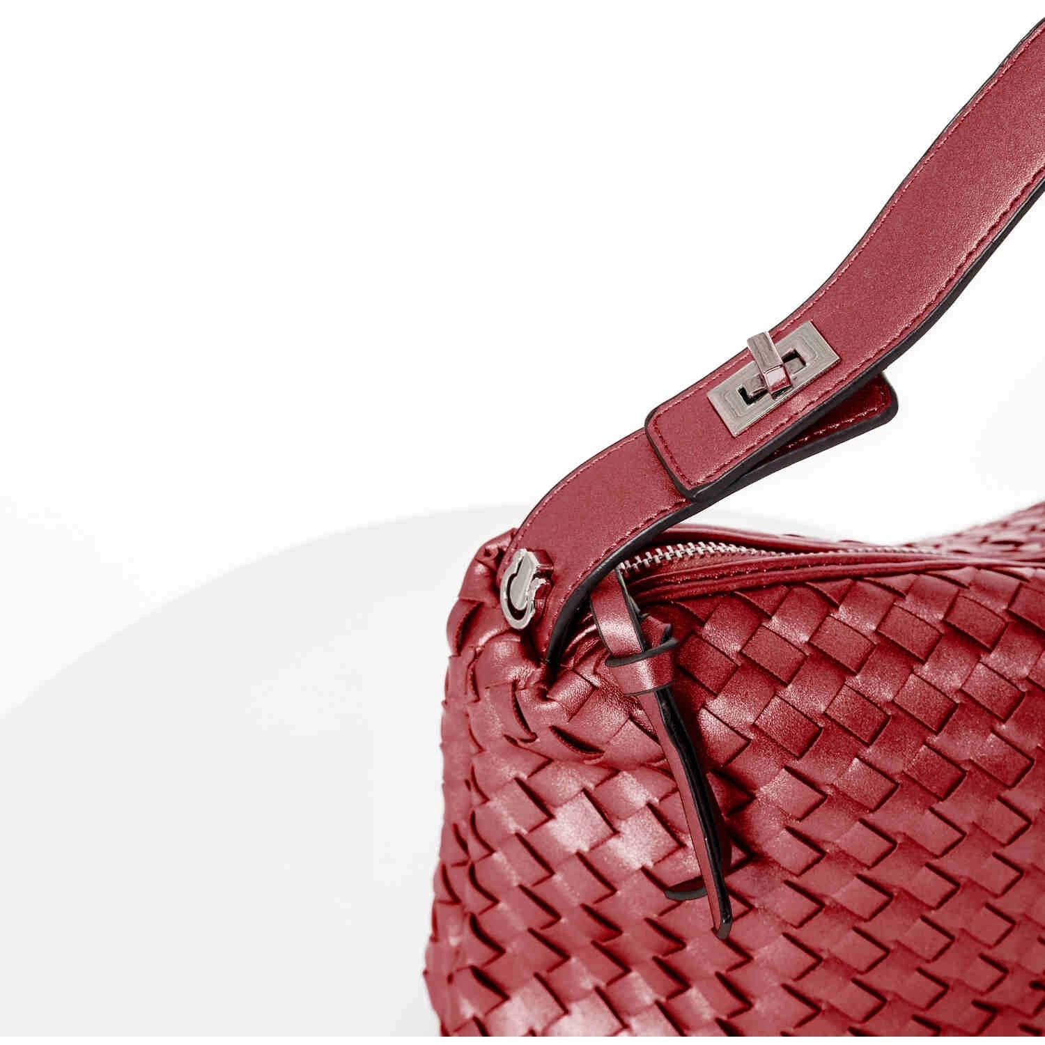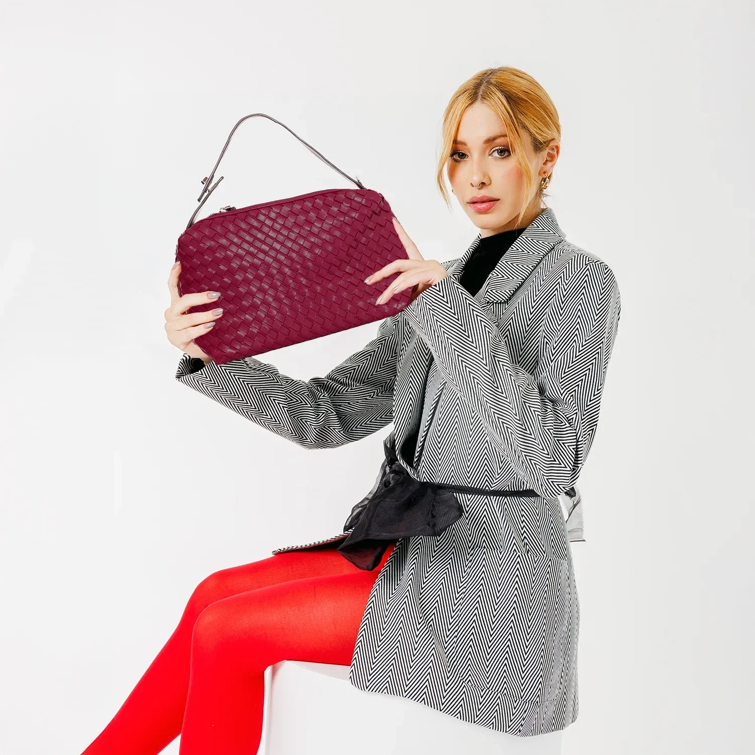 The Rivah Braided Women's Bag is a standout piece crafted in eco leather with a beautiful braided texture that brings dimension and elegance to its structured silhouette. Designed for both hand and crossbody wear, it features a soft curve, secure zip closure, and a removable strap for added versatility. Compact yet roomy, it effortlessly balances practicality and style, ideal for everything from everyday errands to evening dinners. Available in Obsidian Black, Burgundy and Golden Sand. Size: 20x30x10 cm.