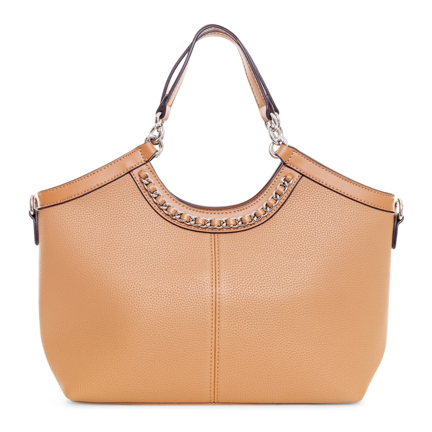 The Serena Chain Tote Bag combines elegance and boldness with its distinctive metallic chain detail and sleek, structured silhouette. Designed in eco leather, this tote offers ample space for daily essentials while maintaining a polished profile. It features a comfortable top handle and a removable strap for hands-free crossbody wear. Available in three timeless shades—Onyx Black, Ivory Cream, and Cinnamon Brown—this piece transitions effortlessly from workwear to weekend with sophistication and edge.