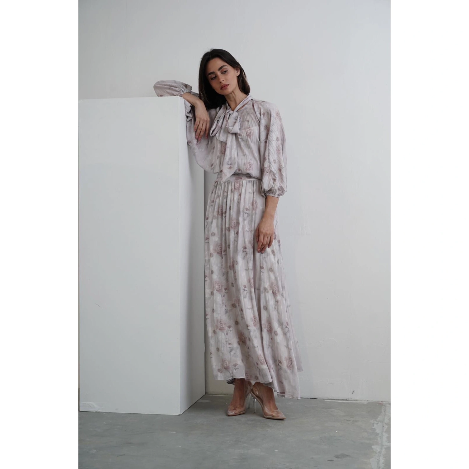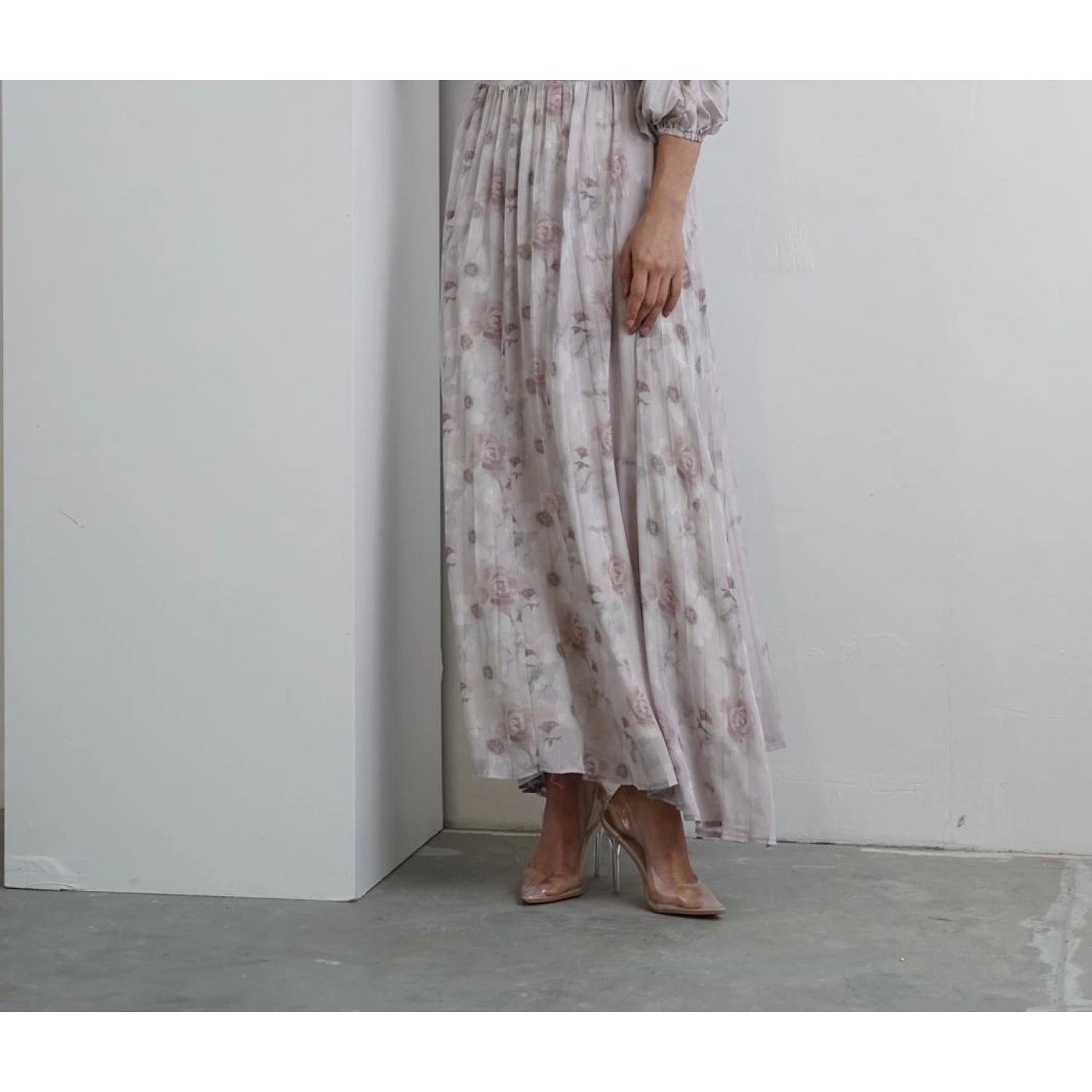 Floral Pleated Skirt - Grey