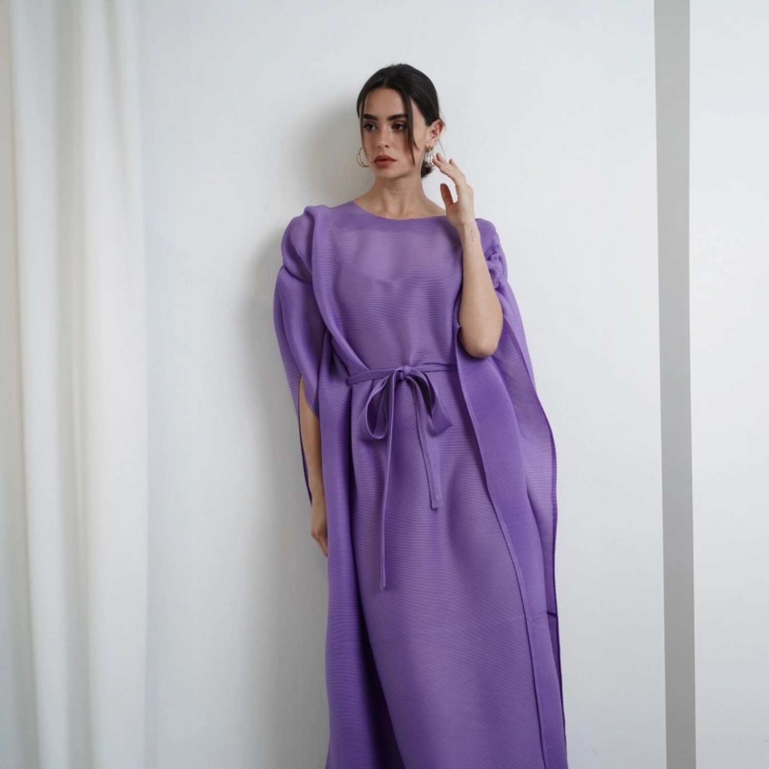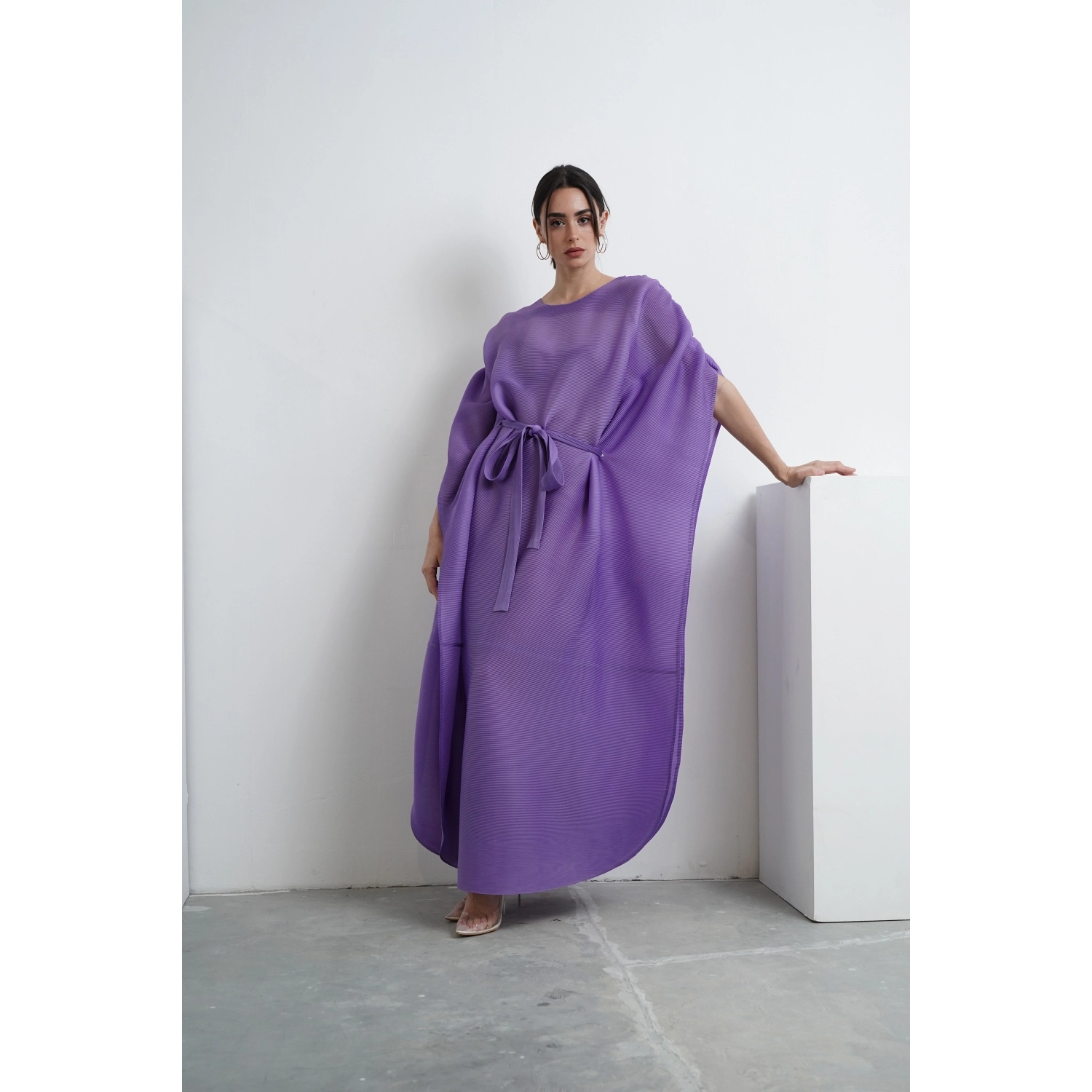 Pleated Cape Dress - Purple