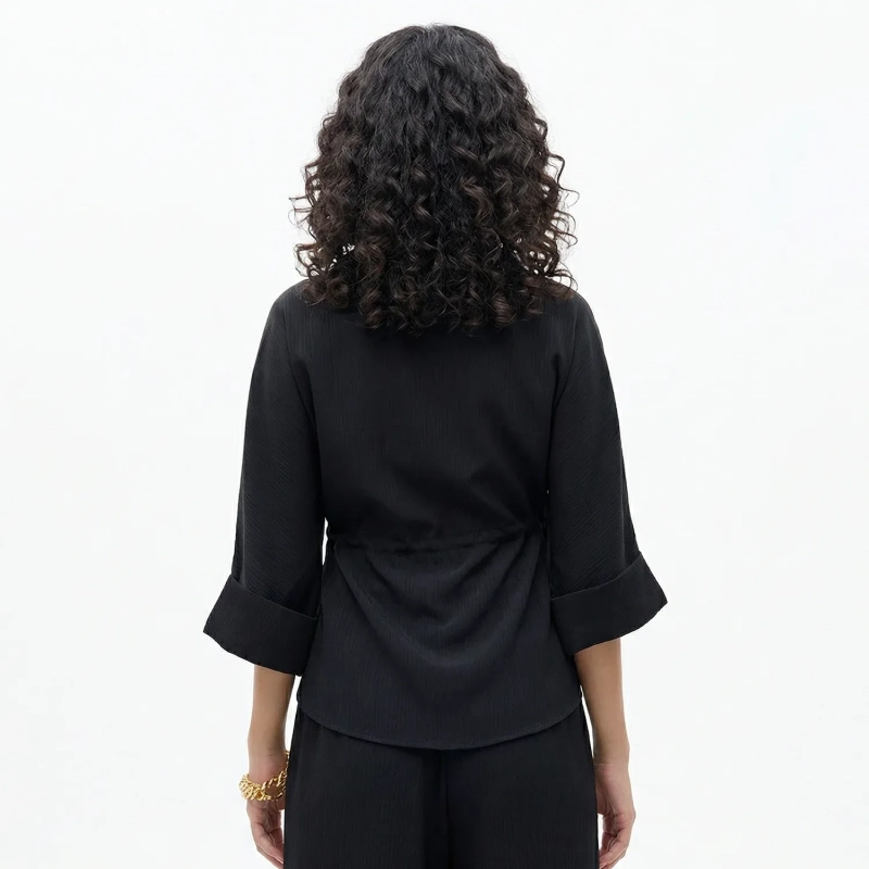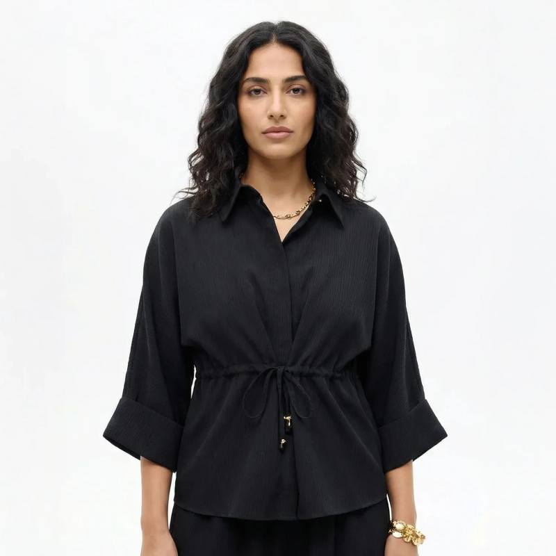 This belted waist shirt is designed to create a flattering and elegant silhouette with