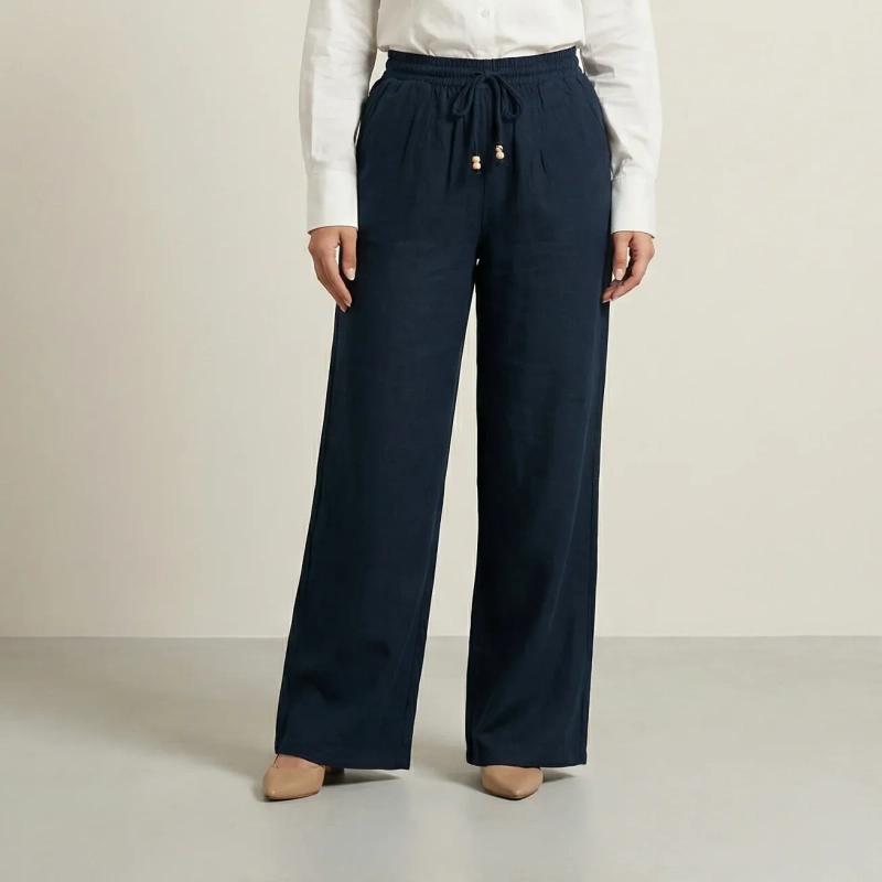 flattering and elegant touch. Featuring a wide-leg silhouette and a small waist belt,
