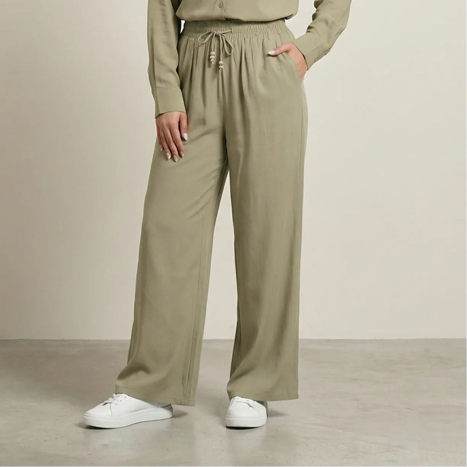 flattering and elegant touch. Featuring a wide-leg silhouette and a small waist belt,