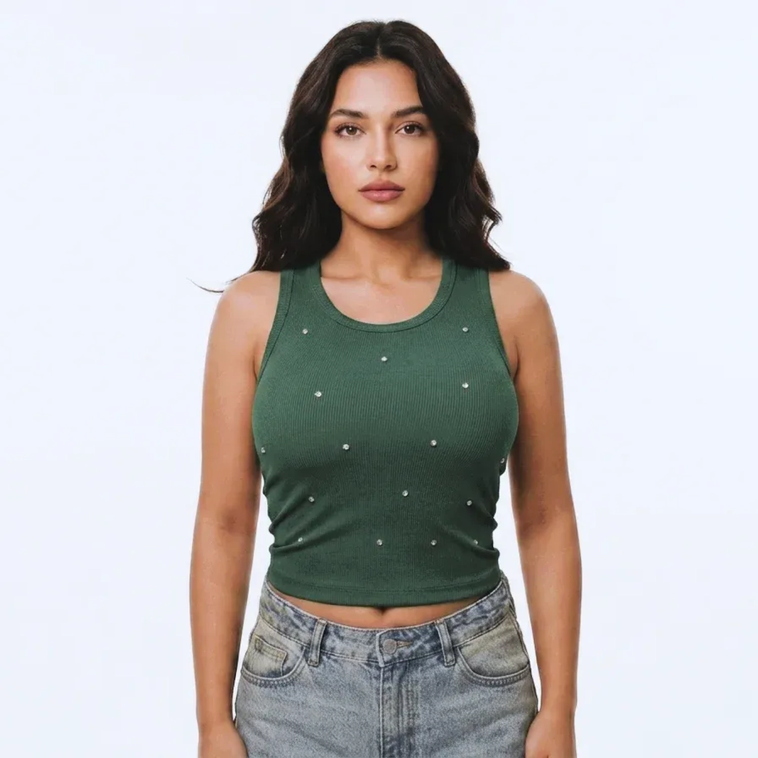Add a touch of sparkle to your everyday look with this Women’s Tank Top, designed for comfort with a subtle dash of elegance. Crafted from a premium blend of 90% Cotton and 10% Elastane, this sleeveless top offers a soft feel and a flexible, flattering fit that keeps you comfortable all day long. The standout feature is a delicate arrangement of crystals that brings a hint of shine and personality, elevating it beyond a basic tank. Whether you’re pairing it with jeans for a casual day out or layering it under a blazer for a dressier look, it blends stretch-comfort and chic in perfect balance.