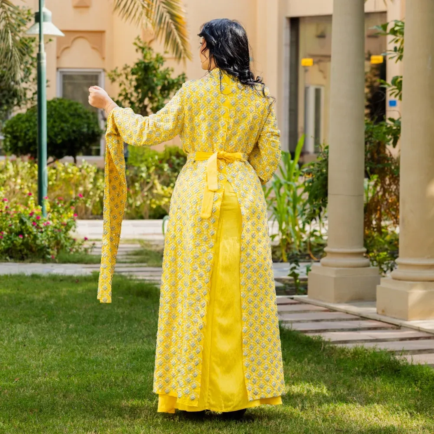 Kuwaiti daraa with delicate embroidery and bead details for classy, festive and elegant look, perfect for festive gatherings.. Made from lightweight linen, it ensures comfort and graceful movement.