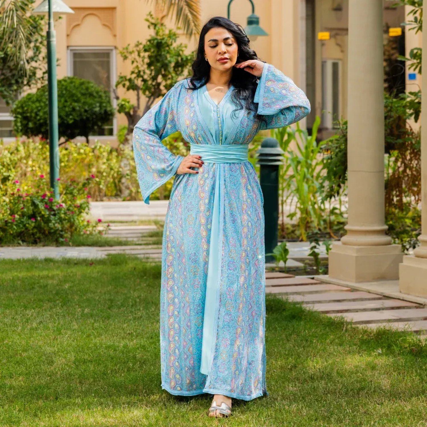 Type: Open Kimono Jalabhiya with Belt