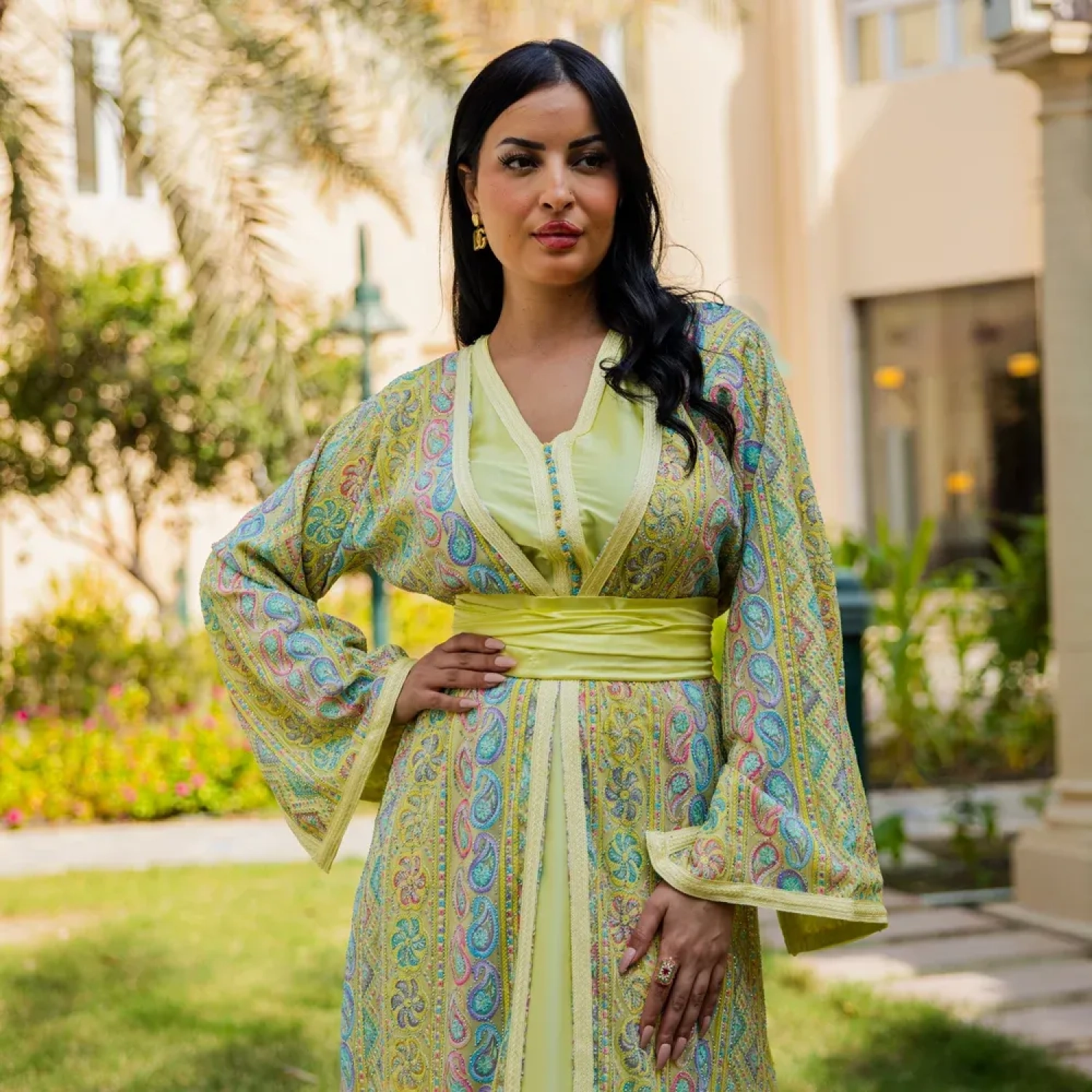 Type: Open Kimono Jalabhiya with Belt