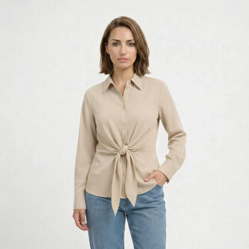 Women’s Long Sleeve Shirt With Clean Cut And Elegant Minimal Design For Everyday And Smart-Casual Wear