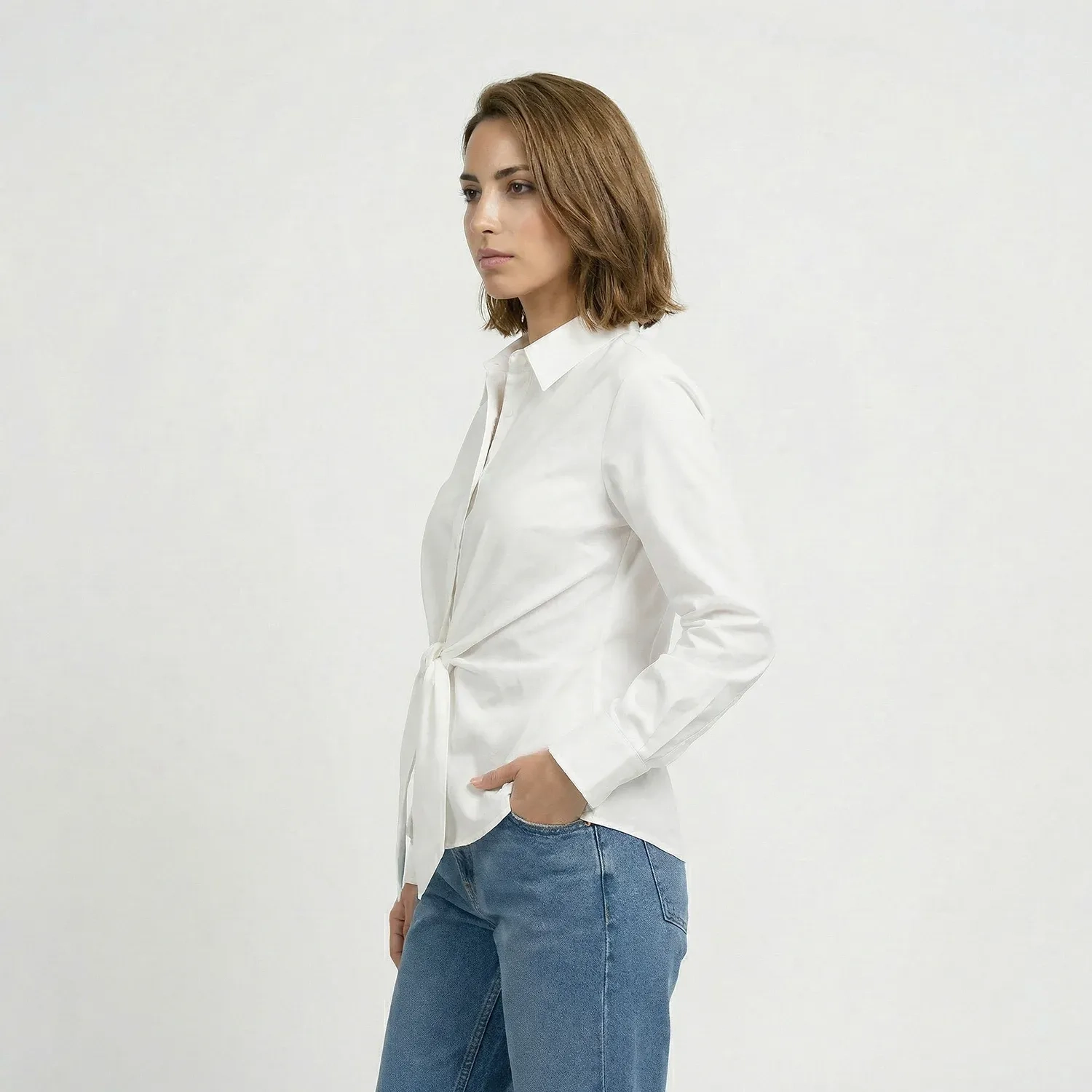 Women’s Long Sleeve Shirt With Clean Cut And Elegant Minimal Design For Everyday And Smart-Casual Wear