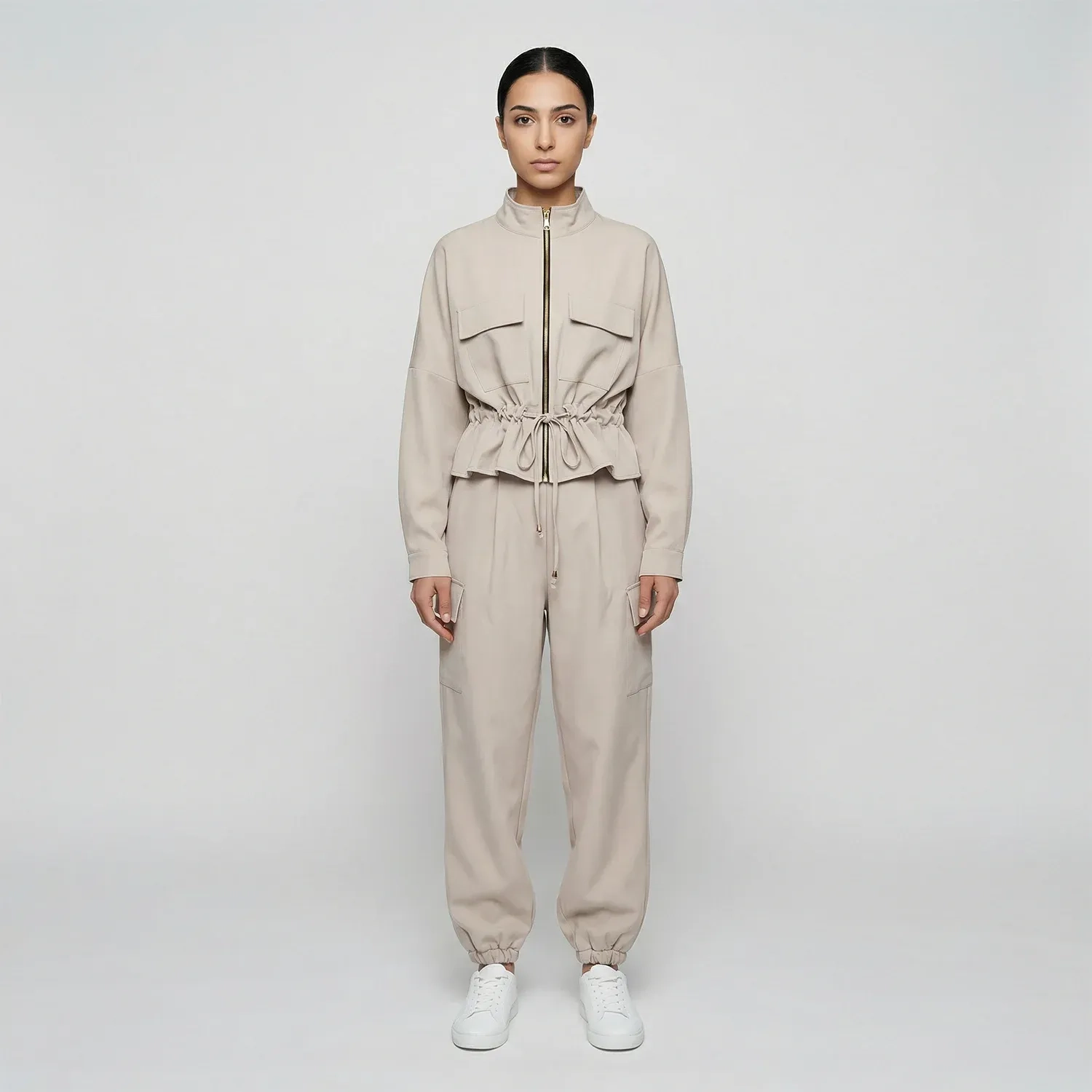 This women’s comfy casual set is designed for relaxed everyday wear while keeping a coordinated and stylish look. The set includes a jacket with two front chest pockets and matching cargo pants, offering both comfort and practicality. Its plain and versatile design makes it perfect for lounging, casual outings, or relaxed smart-casual styling. Available in 4 essential colors, this set is a go-to choice for effortless comfort and modern style.