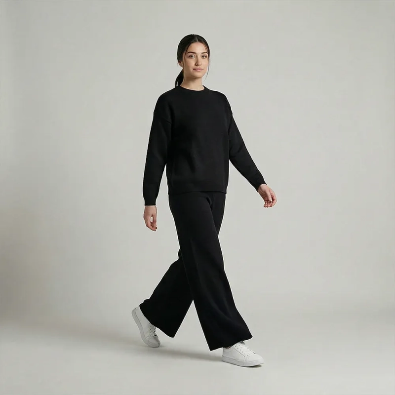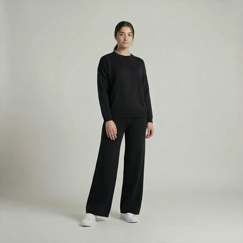 Women’s stylish Knitwear Set With Relaxed-Fit Top And Wide-Leg Pants