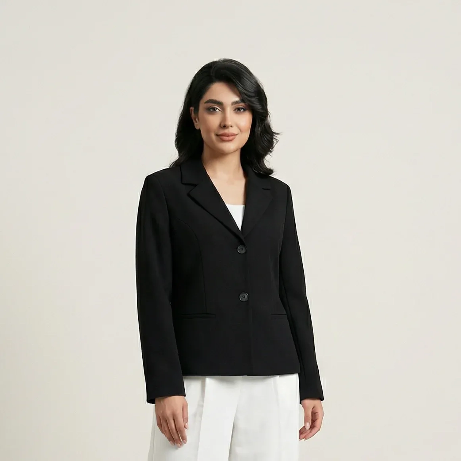 With its clean lines and expert tailoring, this jacket offers a flattering and elegant fit that's ideal for a variety of occasions, from business meetings to social events. It can be worn with the matching trousers for a cohesive suit look or paired with skirts and jeans for smart-casual outfits.