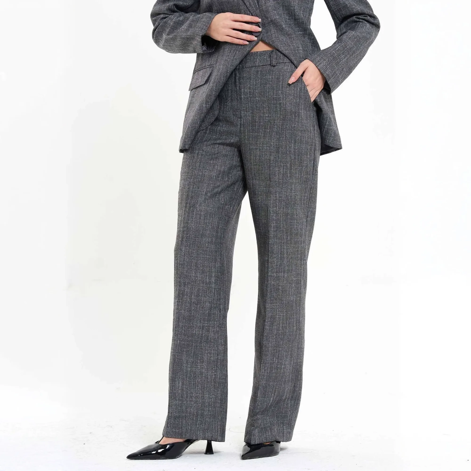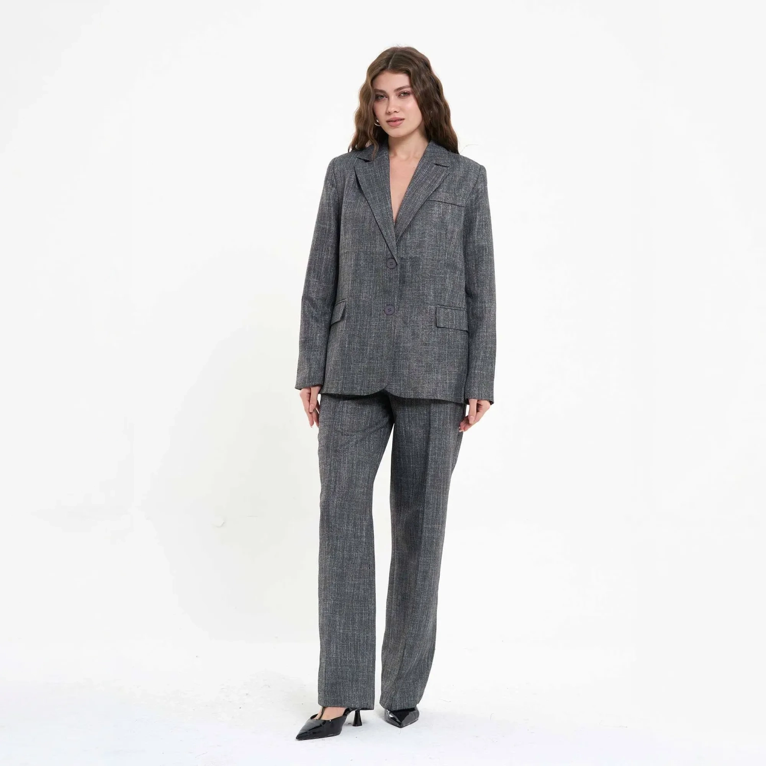 Women’s Tailored Jacket Suit with Back Hem Slit – Structured Professional Blazer & Trousers – Modern Business Wear