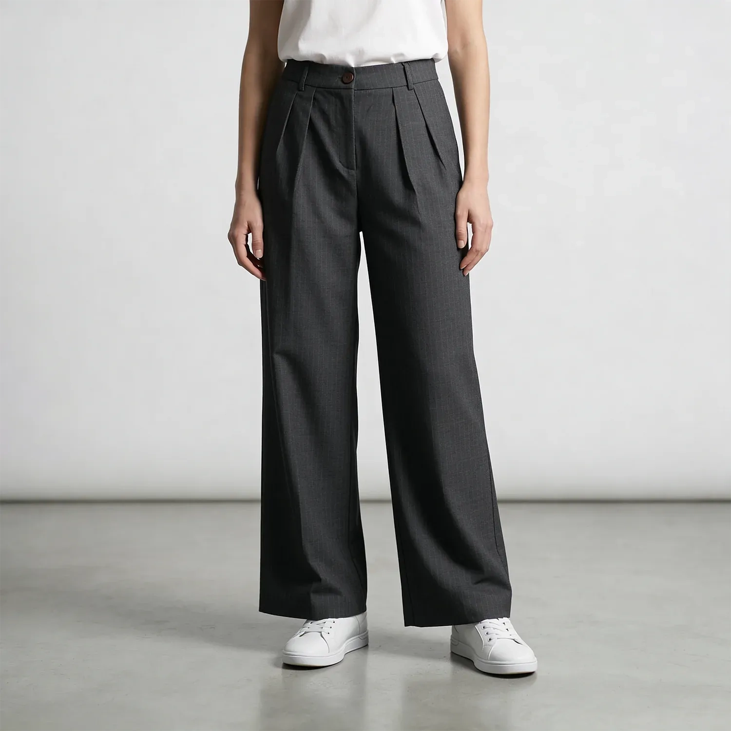 These women’s formal pants are designed to deliver a clean and refined look with a comfortable, easy-to-wear fit. Featuring a straight-cut silhouette that is neither tailored nor baggy, they offer a balanced shape suitable for everyday formal and smart-casual styling. The white stripe detailing adds a subtle contrast that enhances the overall polished appearance. Designed in a plain yet elegant style, these pants are ideal for workwear or elevated daily outfits. Available in 2 versatile colors, they pair effortlessly with blouses, shirts, or structured tops.