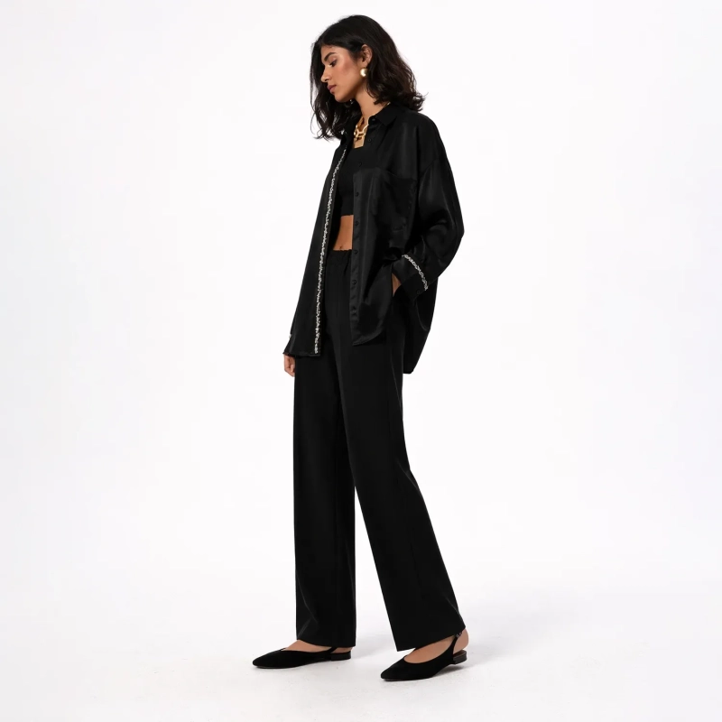 بفضل قصّته الجذابة وملمسه الفاخر، يمنح هذا القميص إطلالة راقية ويمكن تنسيقه بسهولة مع البناطيل أو التنانير لمظهر متكامل وأنيق.