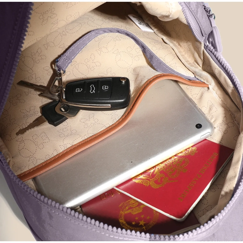 مينينو آند مينينا علامة تجارية برازيلية تشتهر بجودتها العالية وتصميمها العصري. حقيبة ظهر كاندي بوب بلون أرجواني ناعم، بتصميم رقيق وخفيف، مثالية للأيام الدراسية أو النزهات غير الرسمية، تتميز بجيب أمامي وأحزمة مريحة وسلسلة مفاتيح أنيقة. الأبعاد: 40×29×16 سم.
