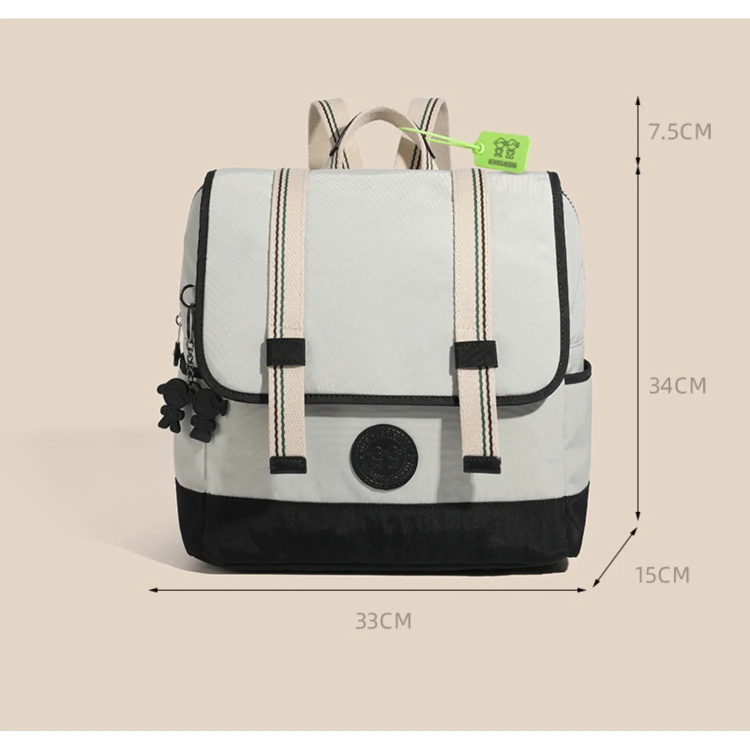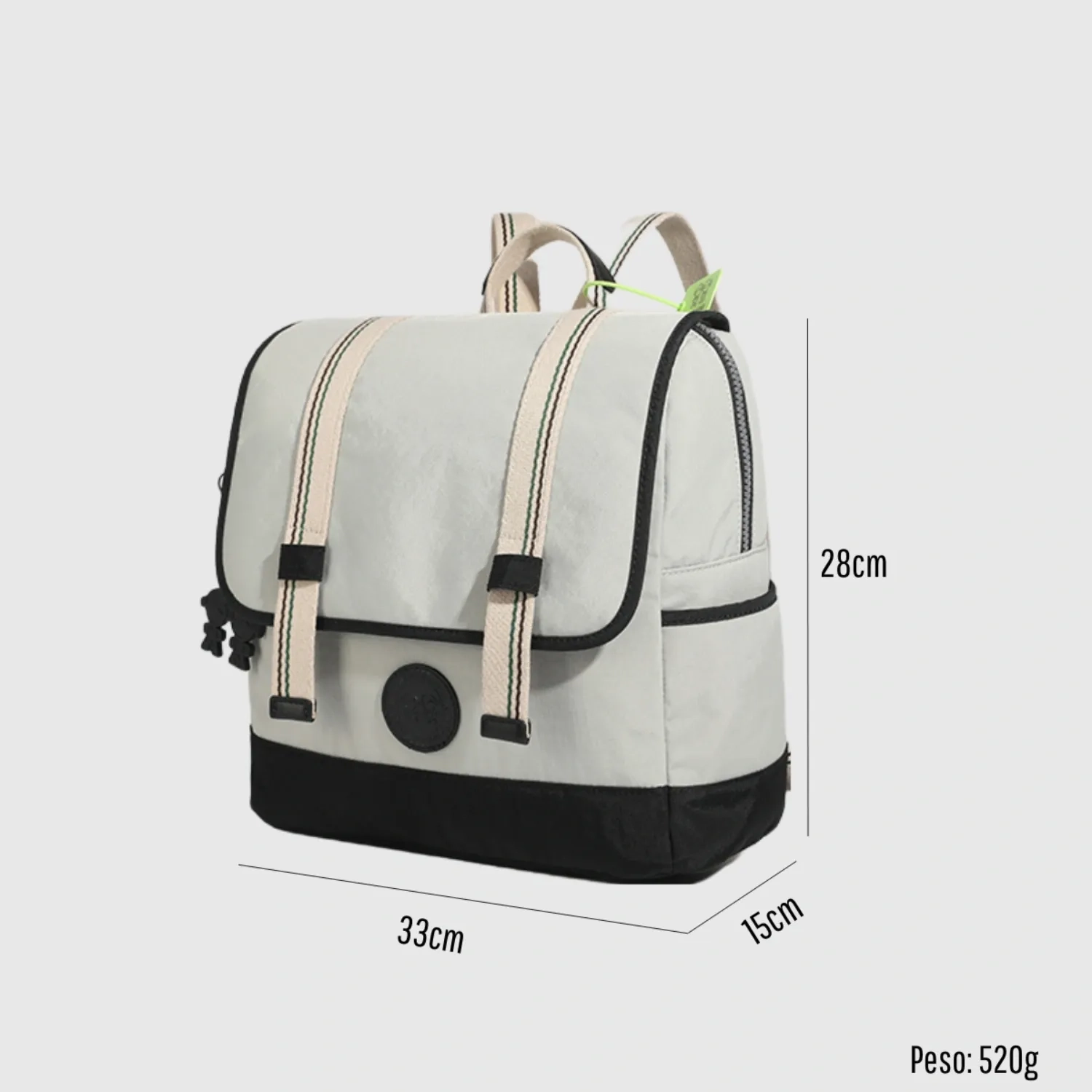 مينينو آند مينينا علامة تجارية برازيلية تُقدم إكسسوارات مرحة وجريئة. حقيبة ظهر رمادية فاتحة جدًا بأحزمة عمودية زرقاء داكنة وتفاصيل سوداء. تصميم عصري بجيوب أمامية، وأبازيم مزخرفة، وأحزمة مبطنة قابلة للتعديل. الأبعاد: ٢٨ × ٣٣ × ١٥ سم، بالإضافة إلى ٧.٥ سم (٣ بوصات) مع الحزام.