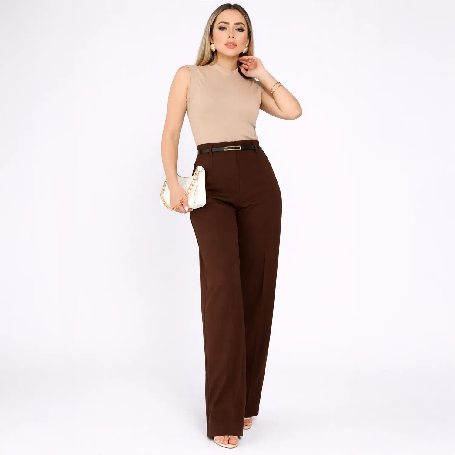 نوع المنتج: بنطلون رسمي بخصر عالٍ مع حزام