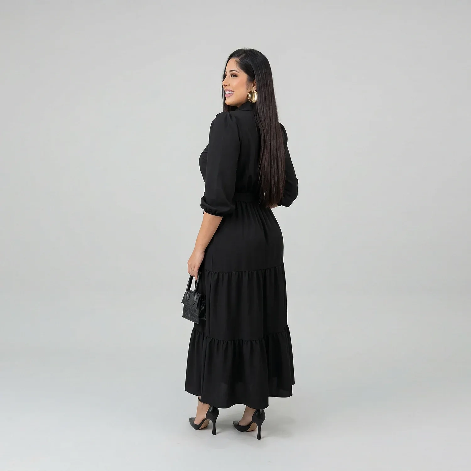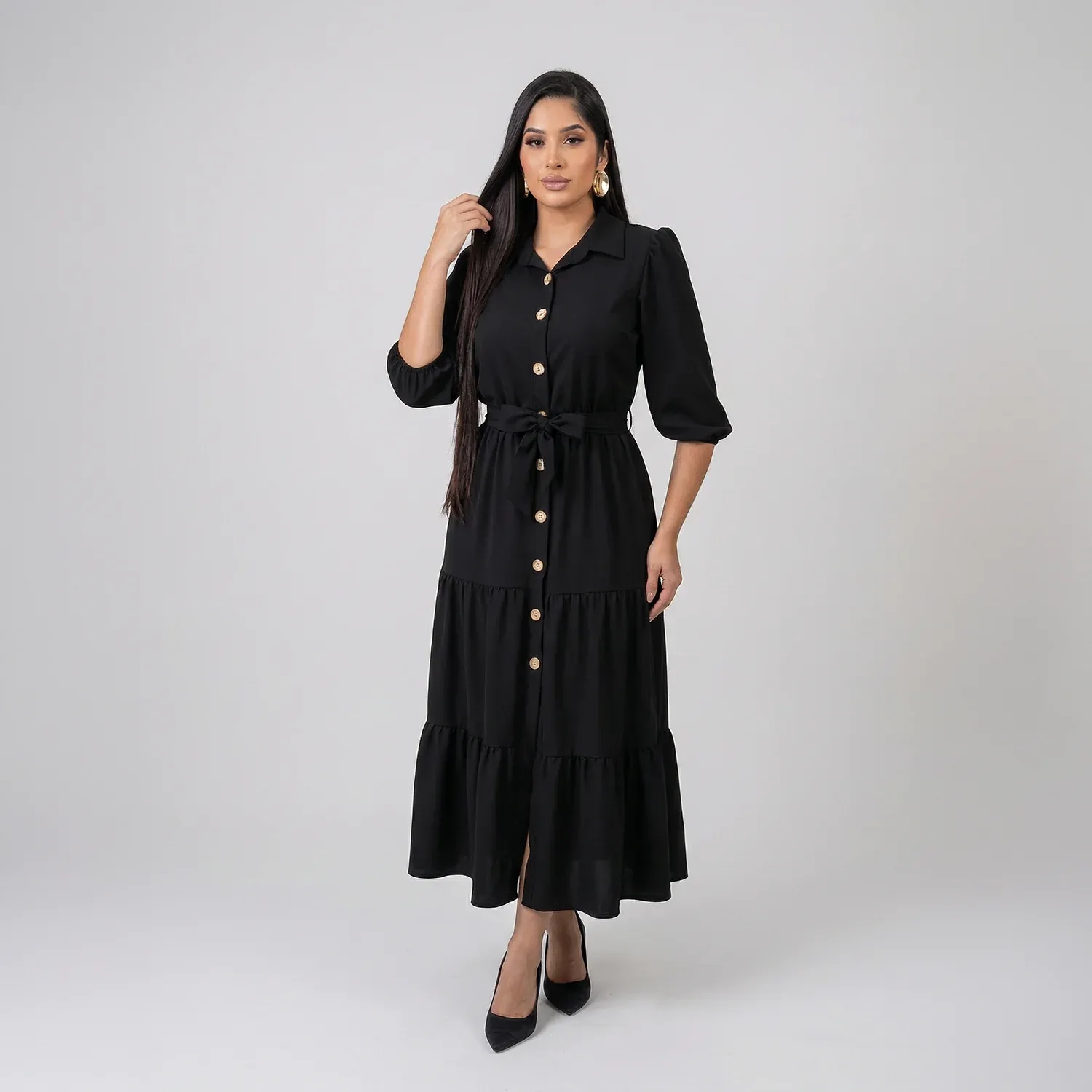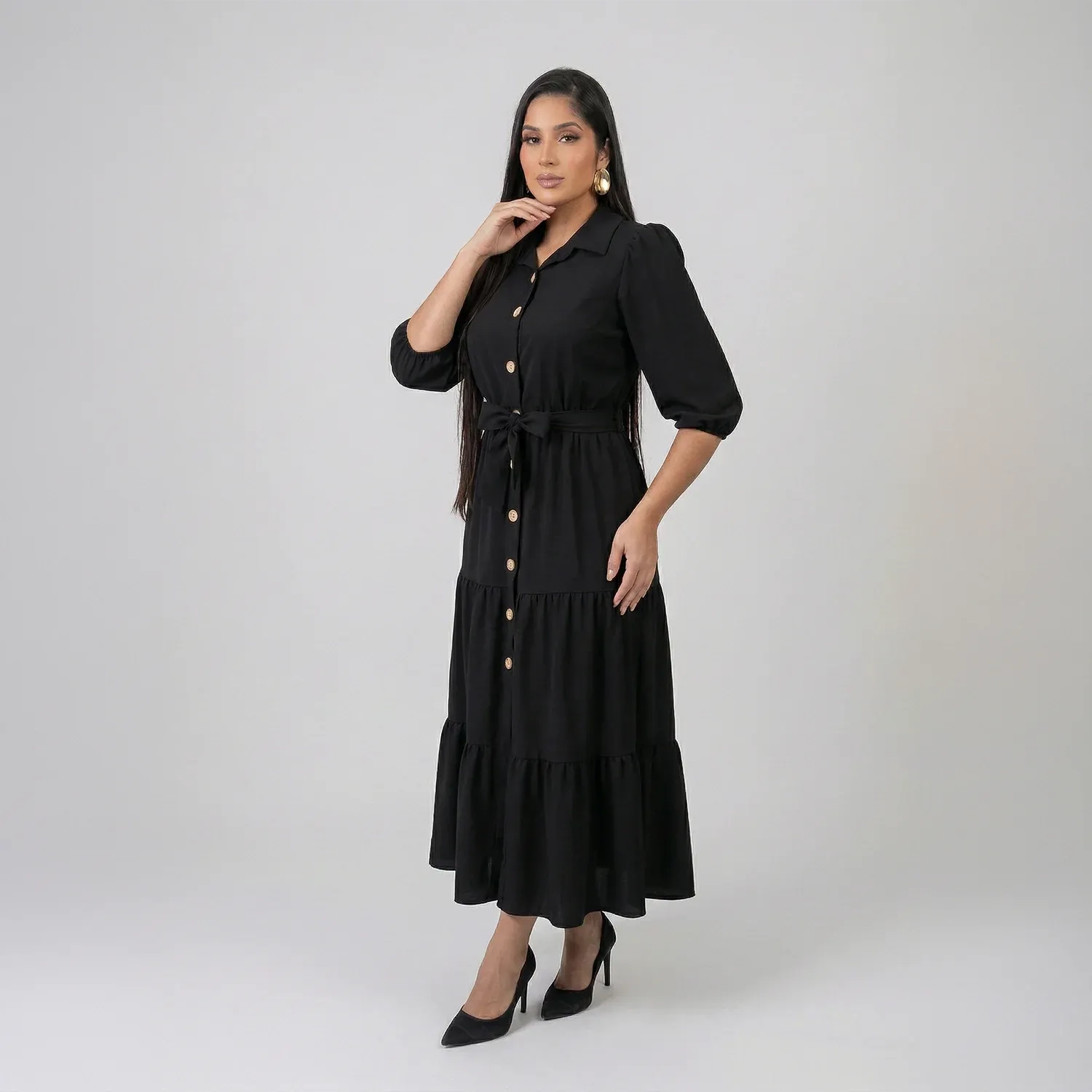تألقي بأناقة لافتة مع هذا الفستان النسائي الطويل، المصمم ليجمع بين الحركة الانسيابية والقوام الجذاب. بفضل قصّته الطويلة وتصميمه البسيط والأنيق، يعد هذا الفستان مثالياً للمناسبات الكاجوال والراقية على حد سواء. ينسدل القماش الناعم والخفيف بجمالية على الجسم، مما يمنحكِ مظهراً انسيابياً يسهل تنسيقه بأسلوب رسمي أو غير رسمي. يشتمل الفستان على حزام قماشي لتحديد الخصر وإبراز جمال القوام، مما يجعله قطعة تتكيف مع مزاجك ومختلف الأجواء. سواء كنتِ تحضرين مأدبة عشاء أو في نزهة نهارية، فإن هذا الفستان هو قطعة أساسية خالدة لكل المواسم.
