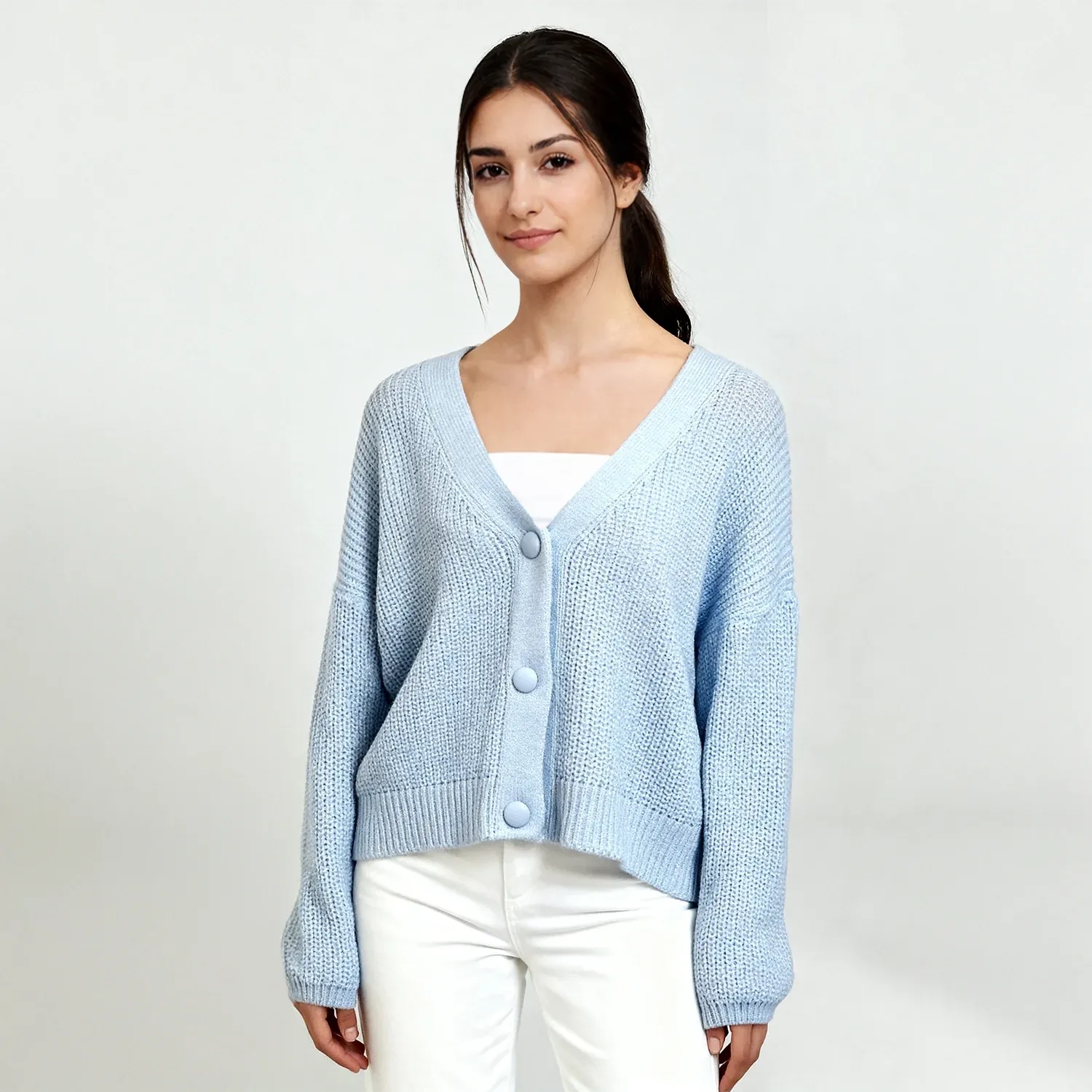 Elevate your layering game with the Bonassa Tricot Women’s Acrylic Knit Cardigan, a piece that embodies refined comfort for the modern woman. As a Brazilian fashion brand, Bonassa Tricot focuses on creating knitwear for adult women who prioritize both versatility and high-quality style. This cardigan is crafted from comfortable acrylic knit, offering essential warmth and a lightweight feel with a refined texture. Standing out in a serene light blue, it is the perfect addition to any wardrobe, balancing modern elegance with cozy, everyday comfort.