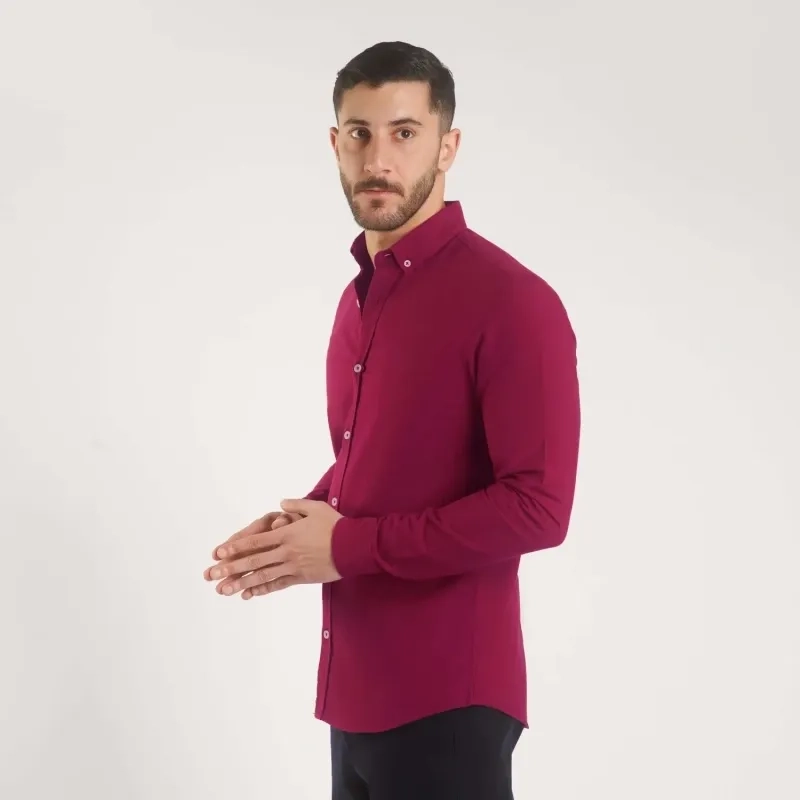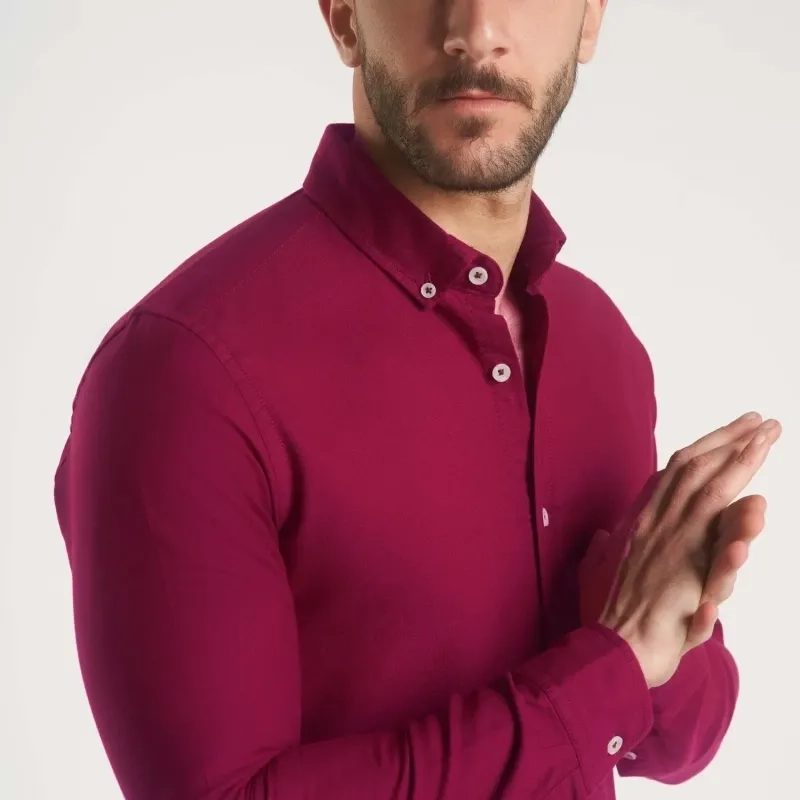 Men's Long Sleeve Shirt - Linen Modern Fit - Red