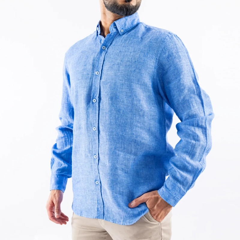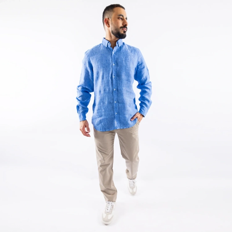 Naga Homme - Men's Long Sleeve Shirt - Linen Modern Fit - Denim Blue