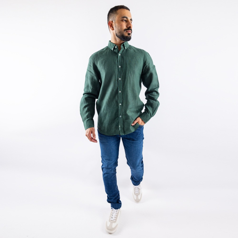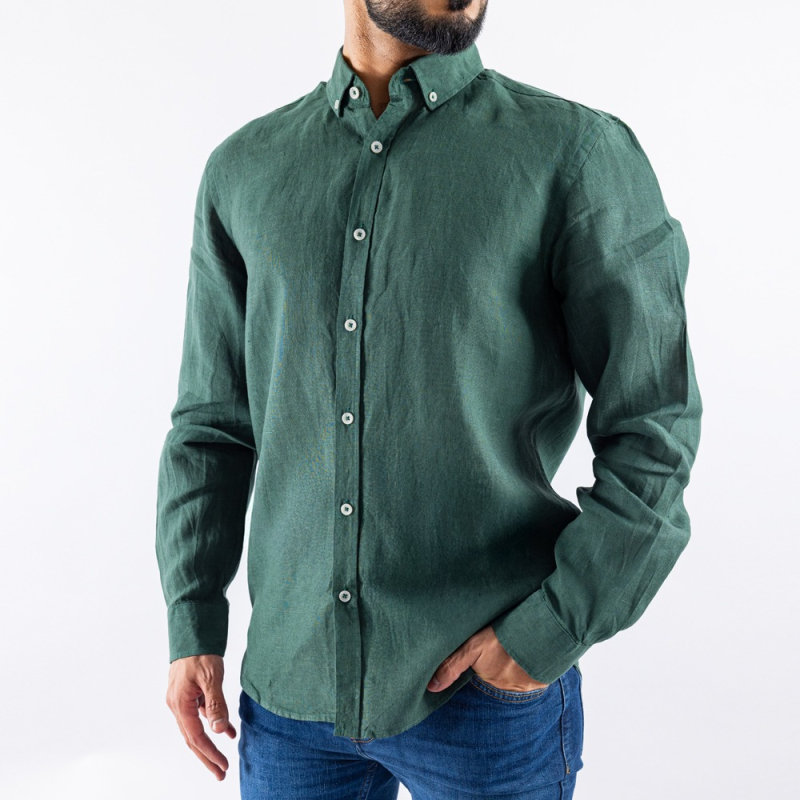 Naga Homme - Men's Long Sleeve Shirt - Linen Modern Fit - Green