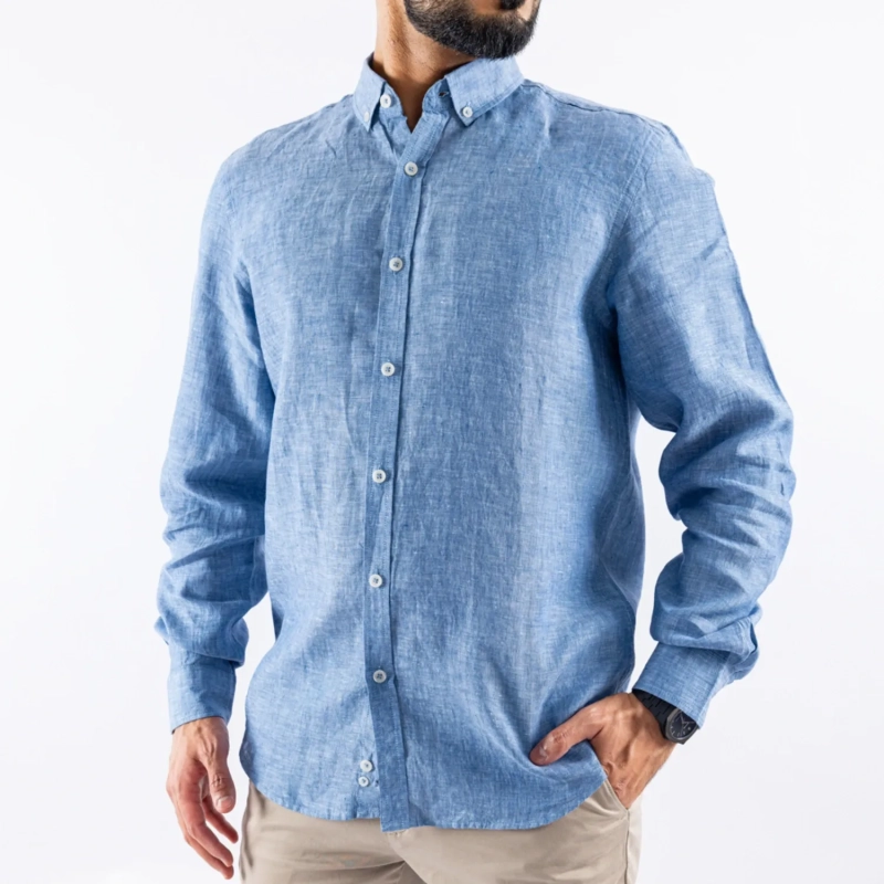 Naga Homme - Men's Long Sleeve Shirt - Linen Modern Fit - Light Navy